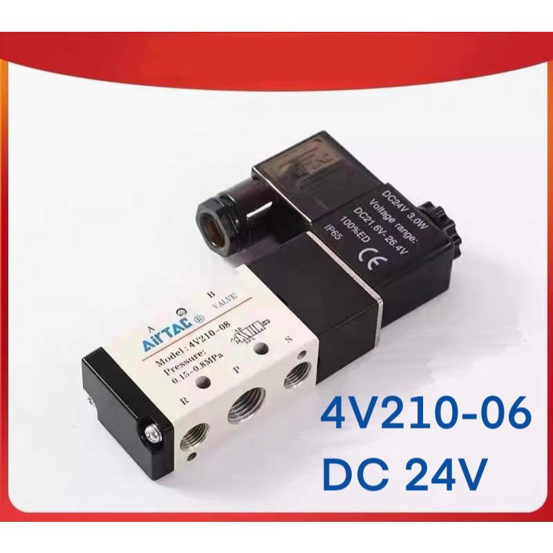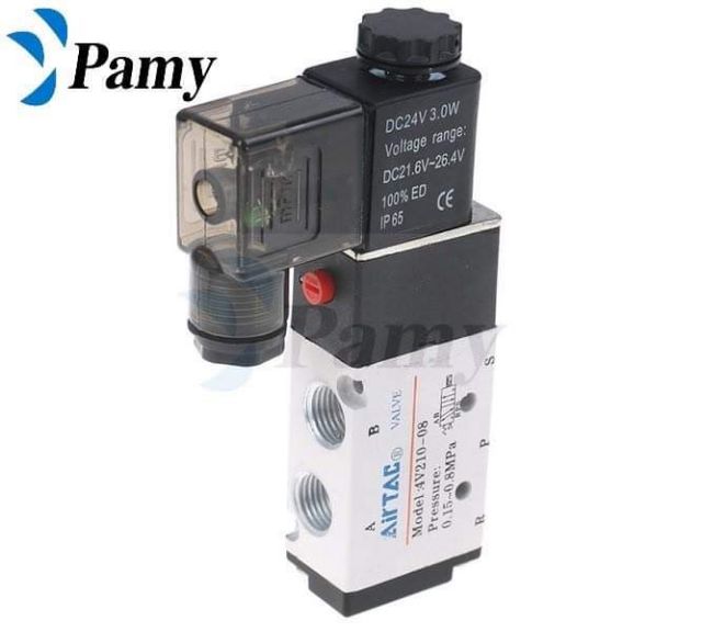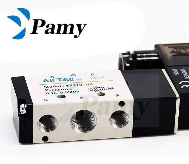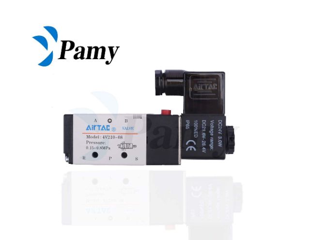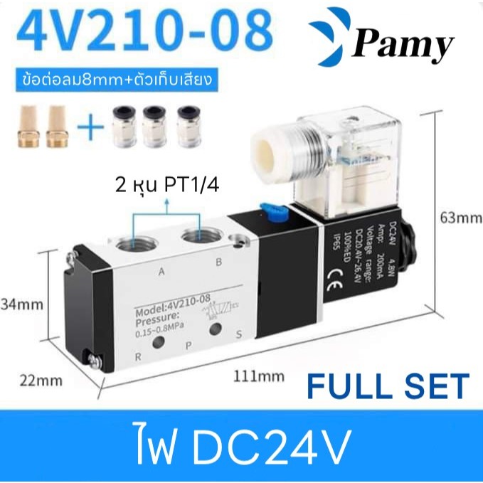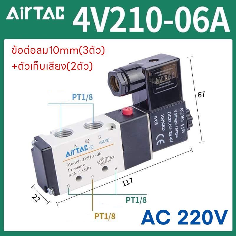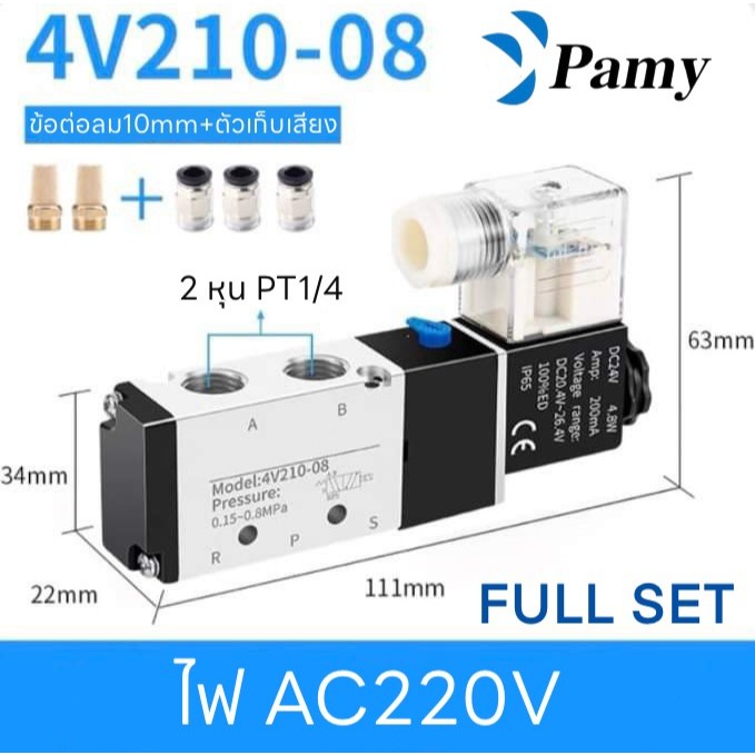 PAMY โซลินอยด์วาล์วพร้อมข้อต่อ ครบเซ็ต วาล์ว Airtac รุ่น 4V210-06 และ 4V210-08 (AC220v/DC24v) solenoid valve airtac 5/2