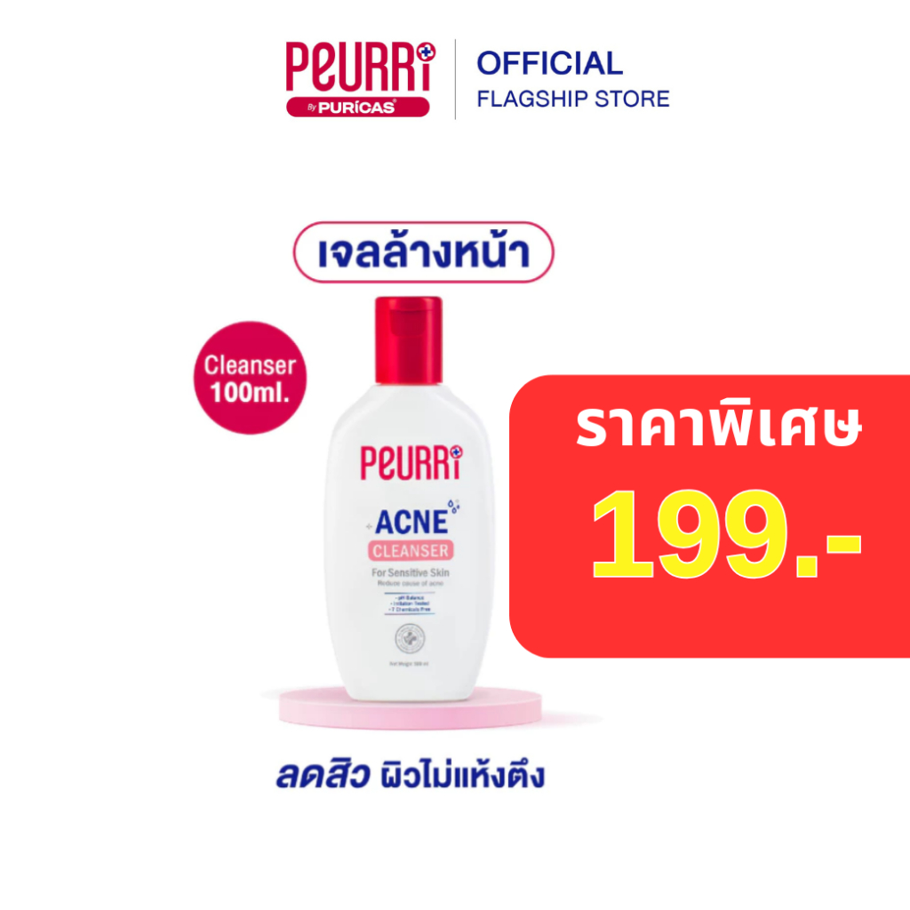 PEURRi By Puricas Acne Cleanser 100ml สูตร ฝาแดง ผิวมัน + ผิวผสม