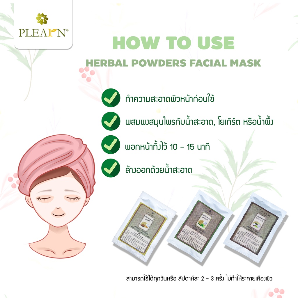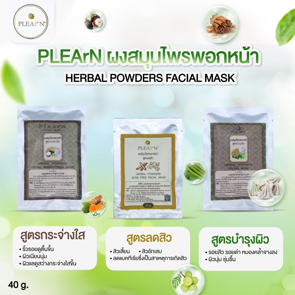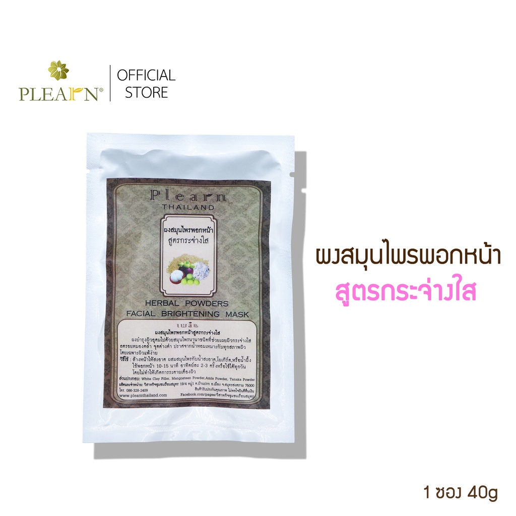 PLEARN ผงสมุนไพรพอกหน้า สูตรกระจ่างใส 1 ซอง 40 กรัม กระจ่างใส เนียนนุ่ม ยืดหยุ่น รอยหมองคล้ำ จุดด่างดำแลดูจางลง
