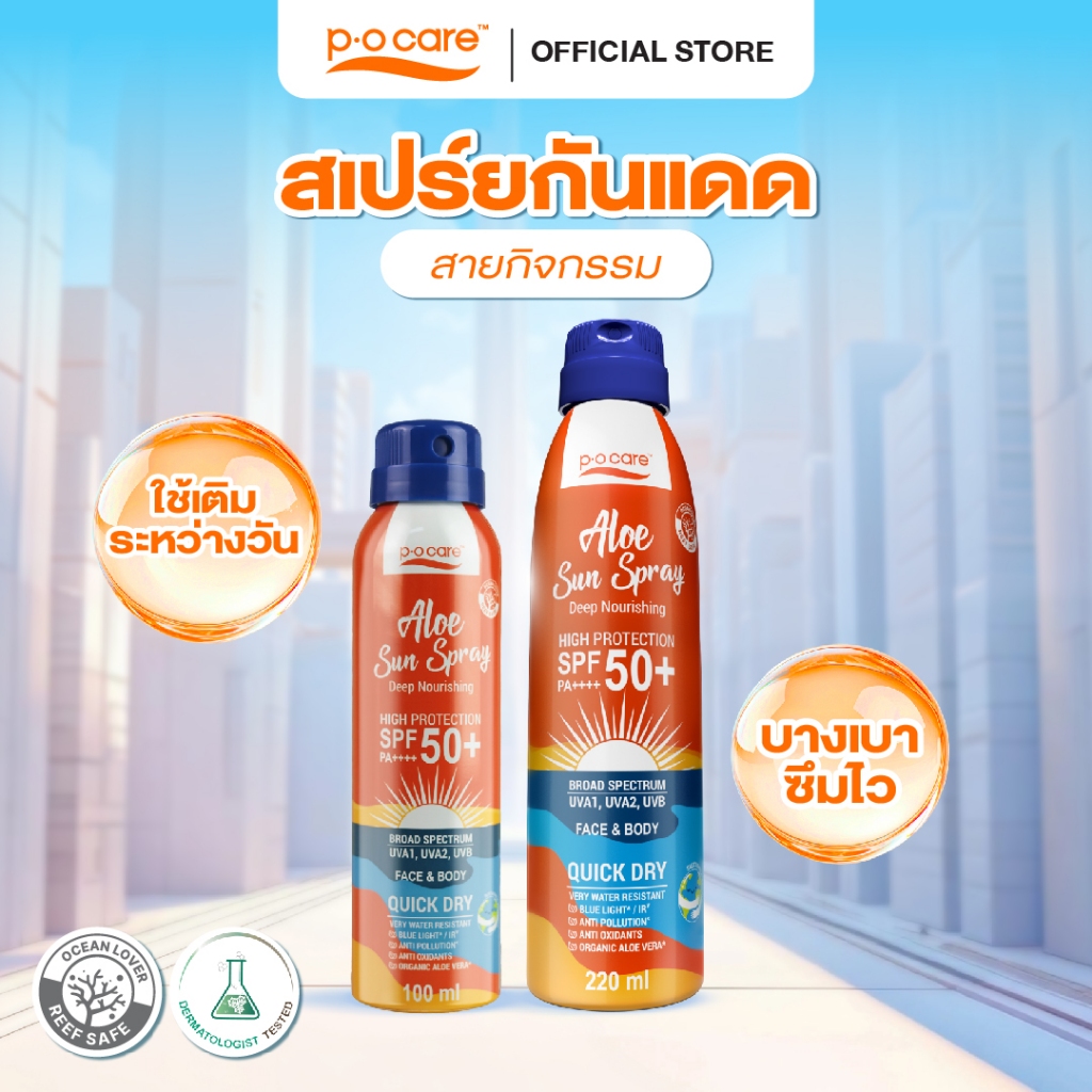 POCARE ALOE SUN SPRAY SPF50+ PA++++ สเปรย์กันแดด สูตรกันน้ำ VERY WATER RESISTANT กันเหงื่อสำหรับผิวหน้าและผิวกาย