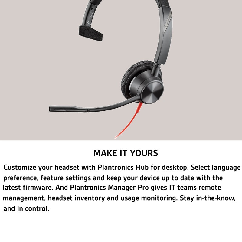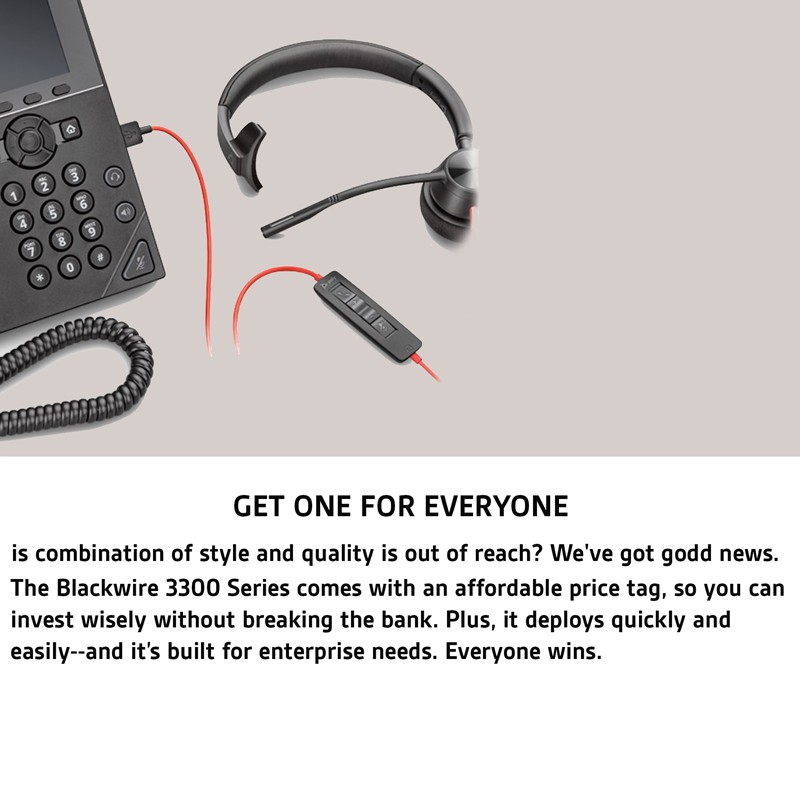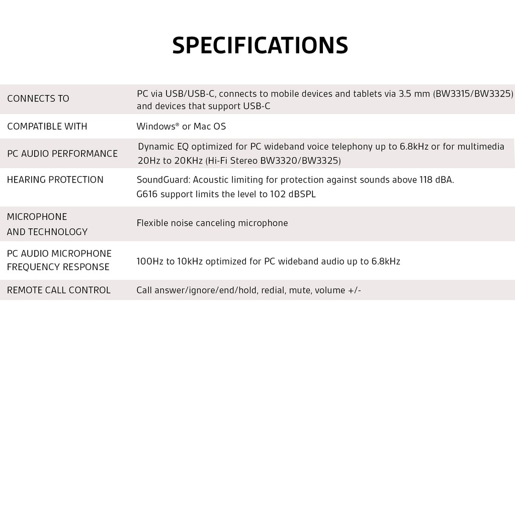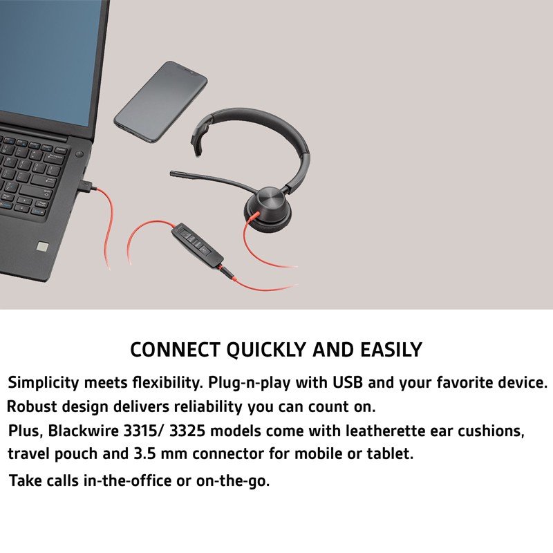 POLY BLACKWIRE 3325,BW3325 STEREO USB HEADSET WITH 3.5 MM CONNECTION MICROSOFT USB-C