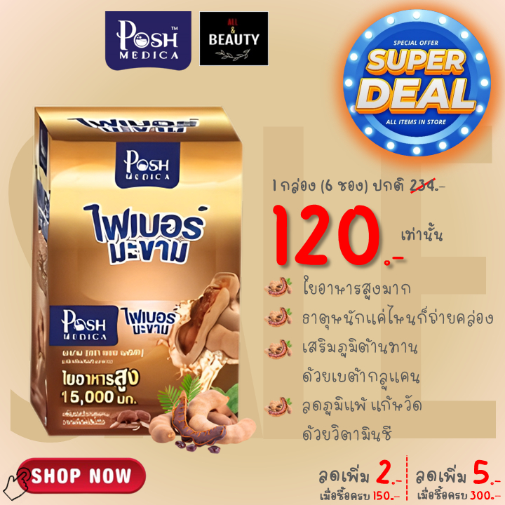 POSH Medica Tamarind Dietary Supplement with High Fiber 15000 mg. พอช ไฟเบอร์ มะขาม 15000 มก. x 6 ซอง/กล่อง