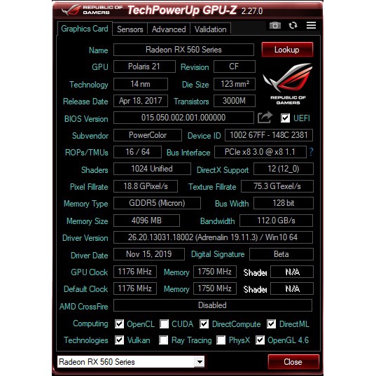POWER COLOR Red Dragon RX560 4GB