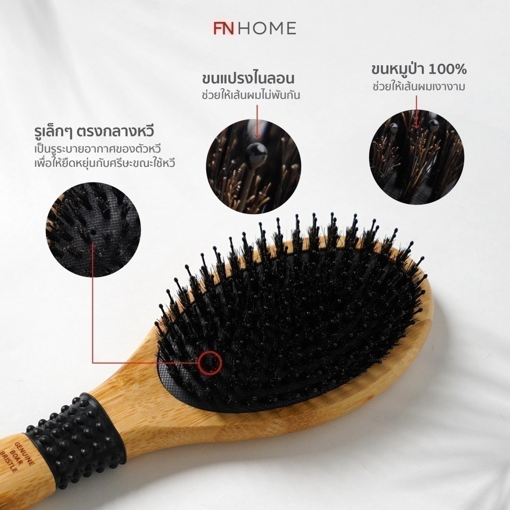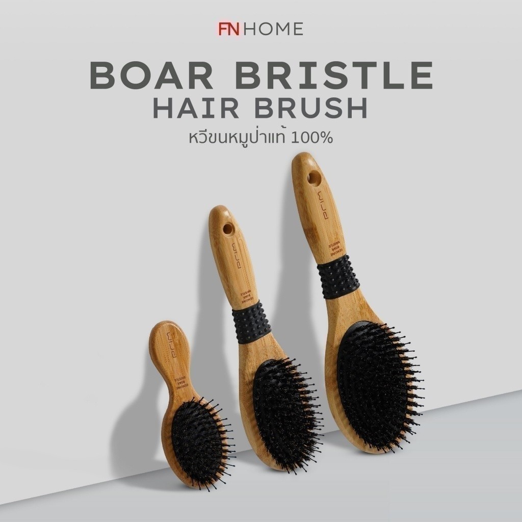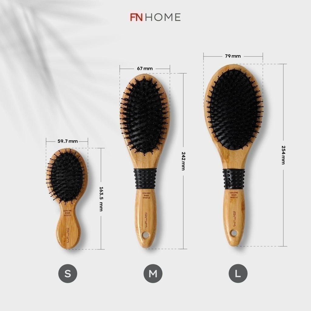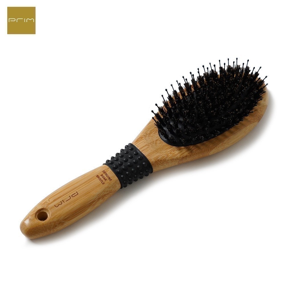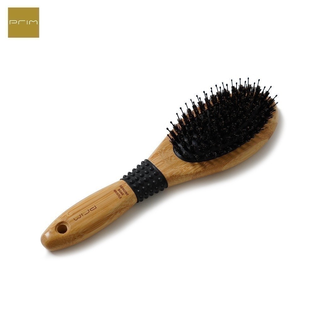 PRIM หวีขนหมู ใช้ขนหมูป่าแท้ รุ่น OVAL SHAPE อ่อนโยนต่อหนังศีรษะ ด้ามจับผลิตด้วยไม้ไผ่ลดไฟฟ้าสถิตย์