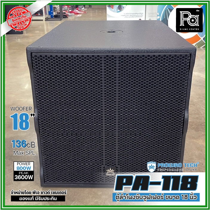 PROEURO TECH PA-118 ตู้ลำโพงซับวูฟเฟอร์ พาสซีฟ ขนาด 18 นิ้ว 3600 วัตต์ ความดังสูงสุด 136dB SPL