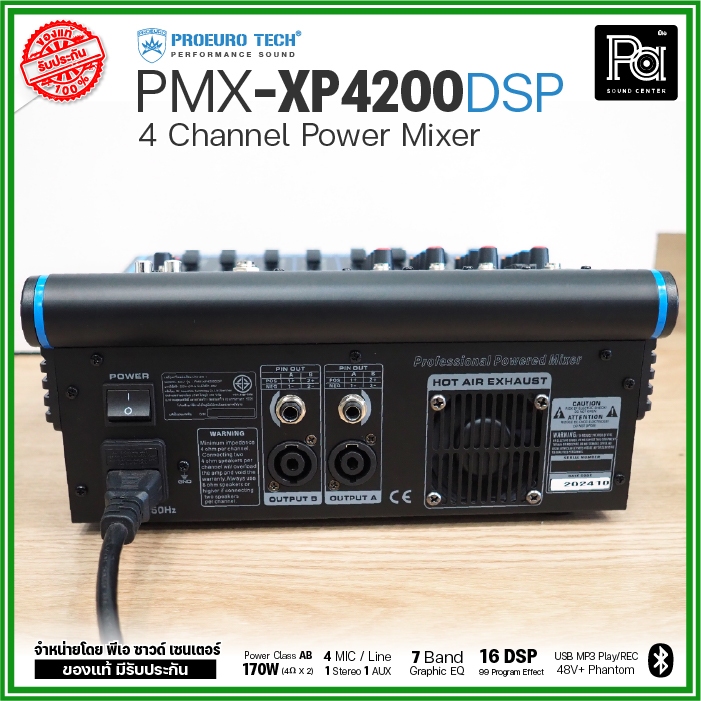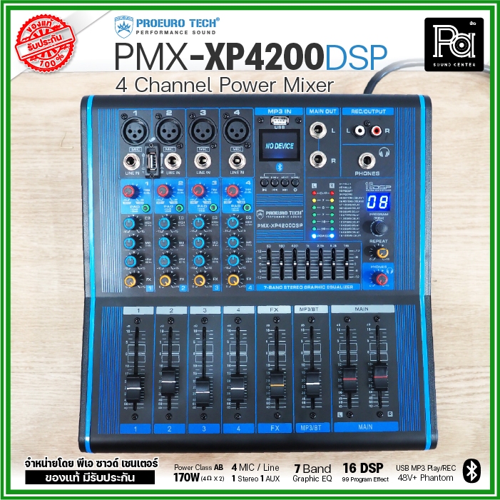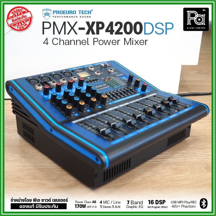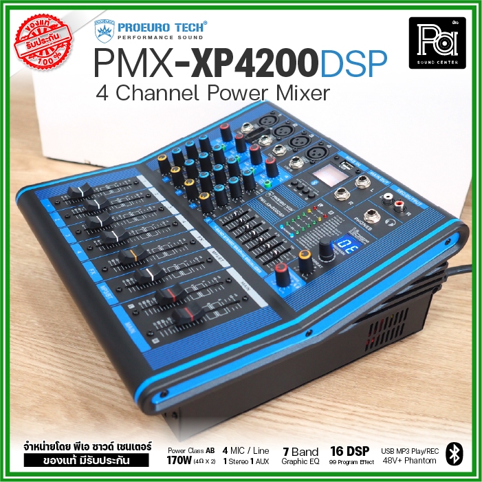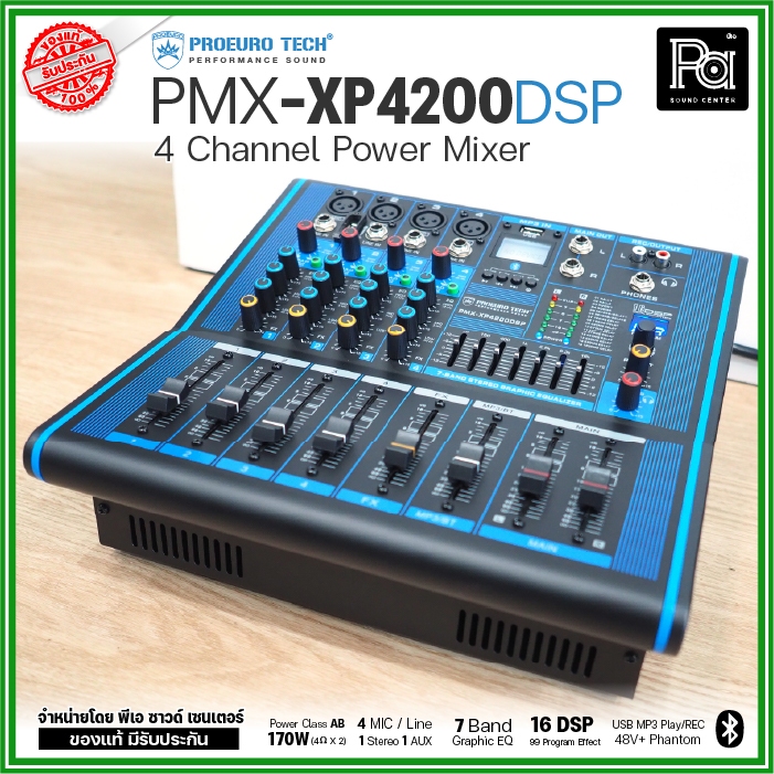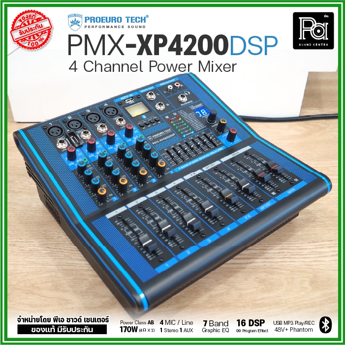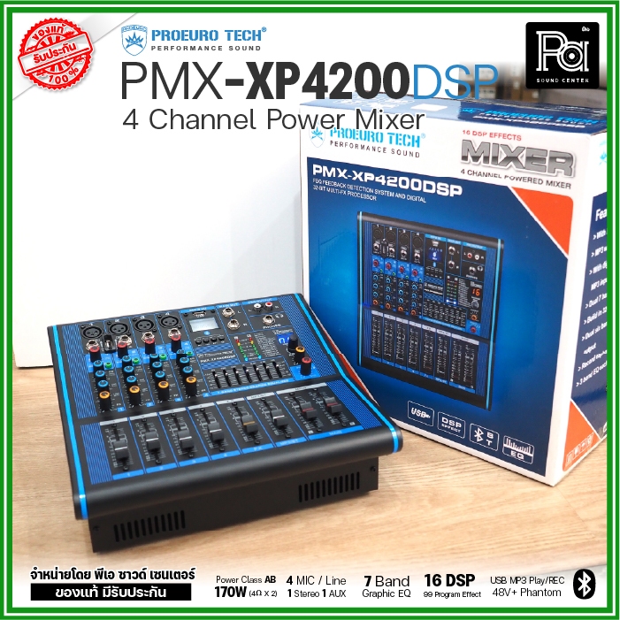PROEURO TECH PMX XP4200 DSP เพาเวอร์มิกเซอร์ 4 CH 170Wx2 USB Bluetooth บลูทูธ POWER MIXER XP 4200