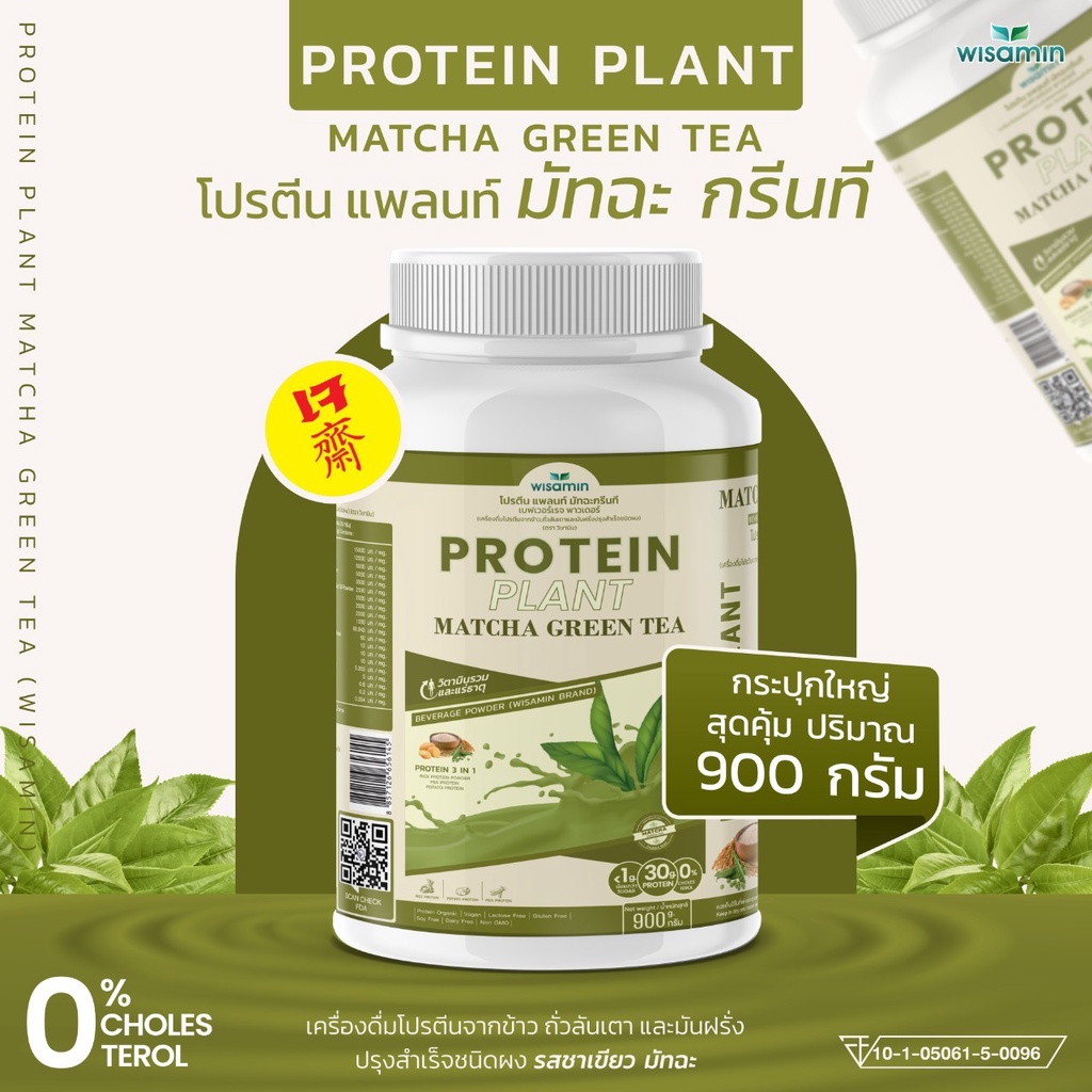 PROTEIN PLANT สูตร 1 โปรตีนแพลนท์ (รสชาเขียว มัทฉะ) โปรตีนจากพืช ออแกร์นิค (ตราวิษามิน) จำนวน 1 กระปุก ปริมาณ 900 กรัม