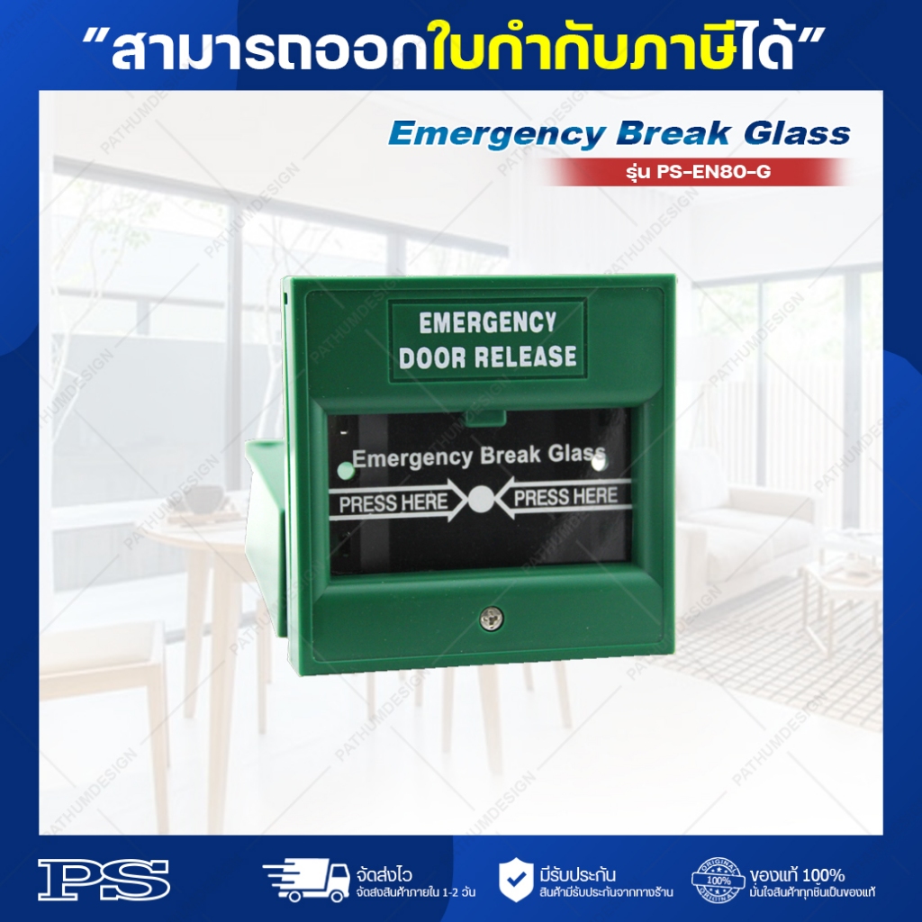 PS-EN80-G สวิทช์ แบบปุ่มกด สำหรับเปิดประตูในกรณีฉุกเฉิน (กระจก)