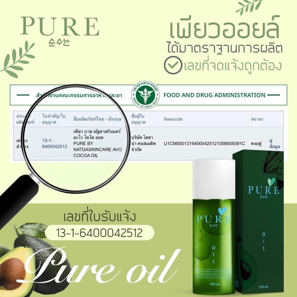 PURE ครีมทาบำรุงรักแร้ 50 g./PURE ORGANIC DEODORANT BRIGHTENING (50g.)/ออยเพียว Pure Oil (100 ml.)
