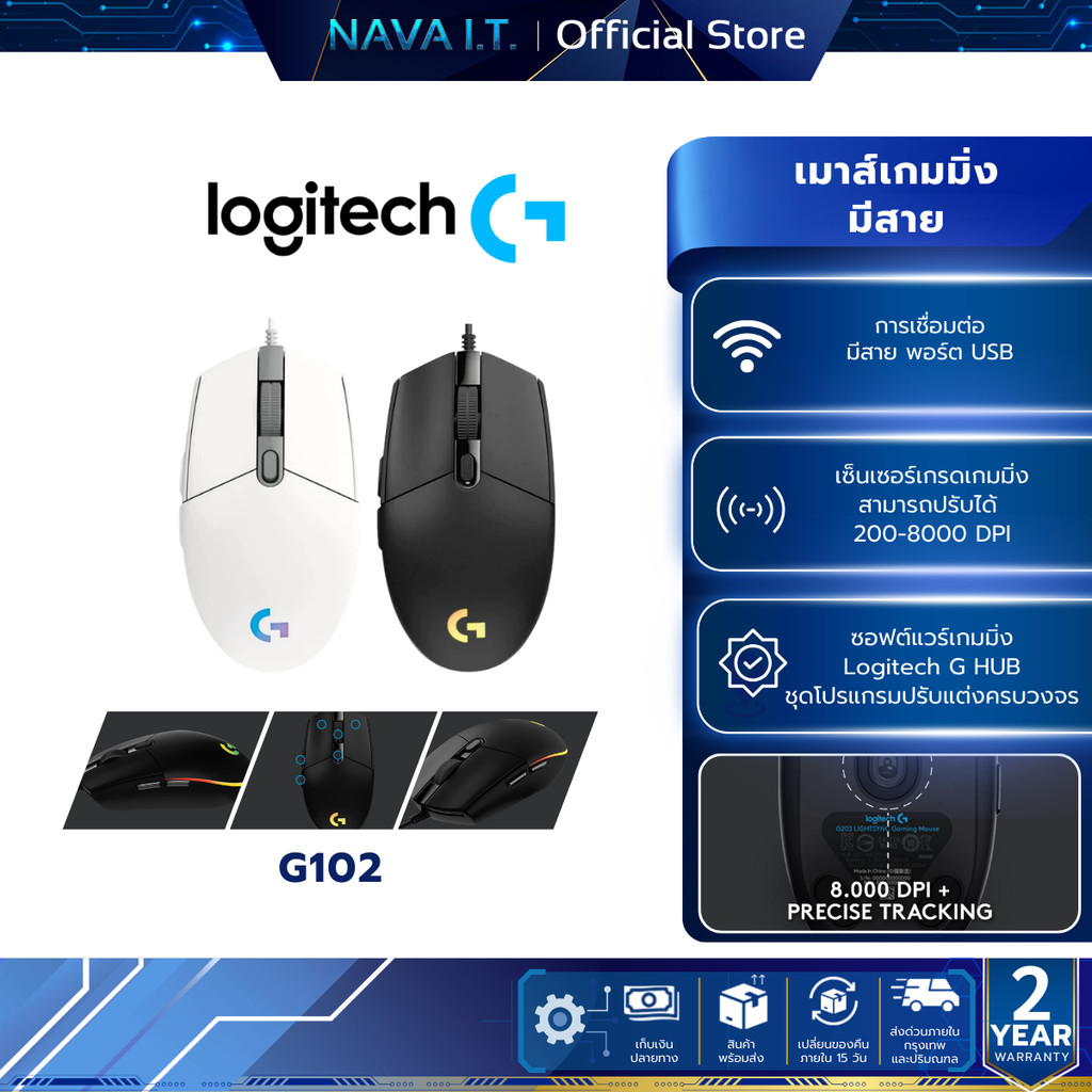 LOGITECH G102 LIGHTSYNC GAMING MOUSE เมาส์เกมมิ่ง พร้อมไฟ RGB 8000 DPI