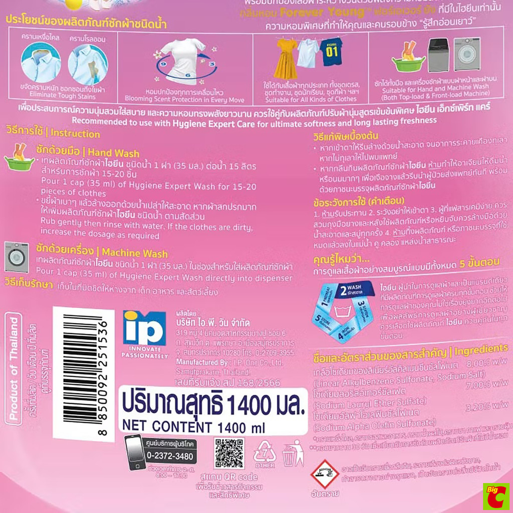 ไฮยีน เอ็กซ์เพิร์ท วอช ผลิตภัณฑ์ซักผ้าชนิดน้ำ กลิ่นฟอร์เอเวอร์ บลูม 1400 มล.
