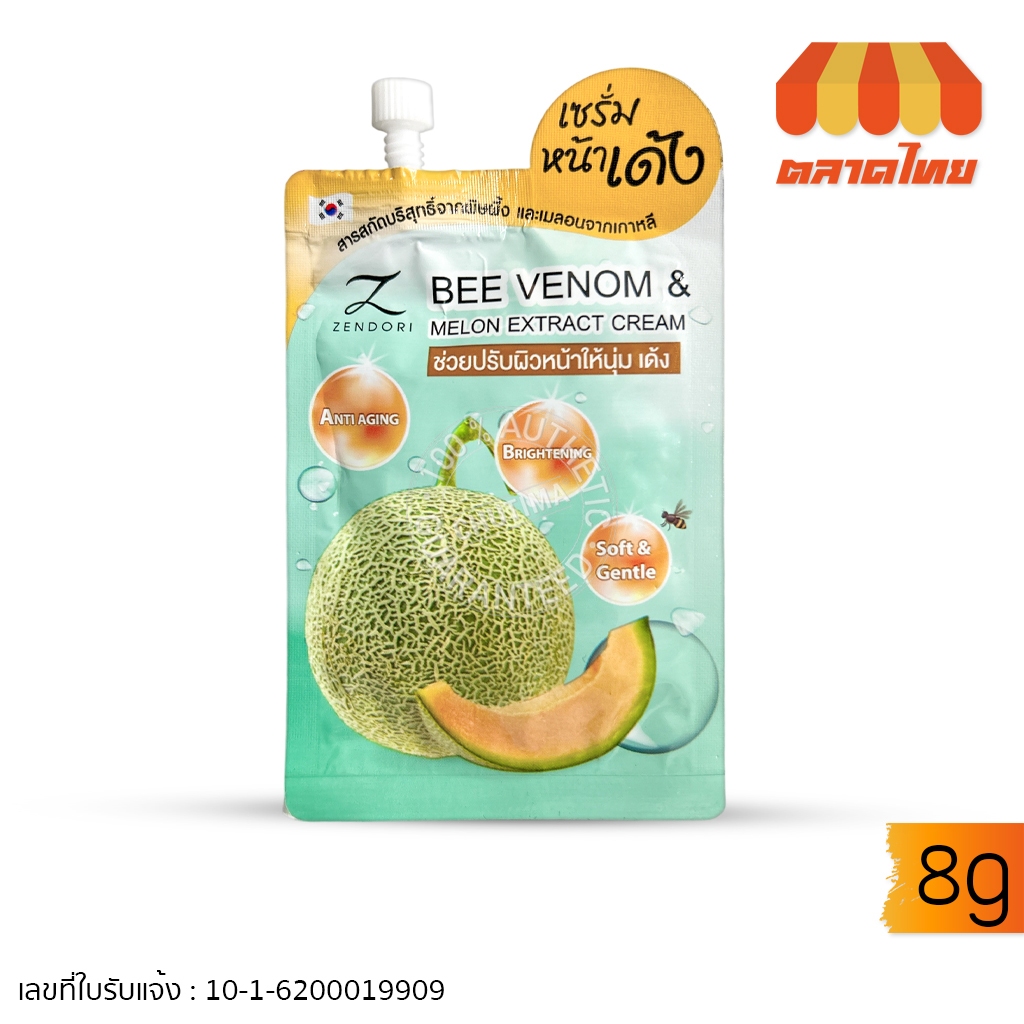 ครีมบำรุงผิวหน้า เนื้อเจล เซนโดริ ครีม Zendori Bee venom & Melon Extract Cream 8g.