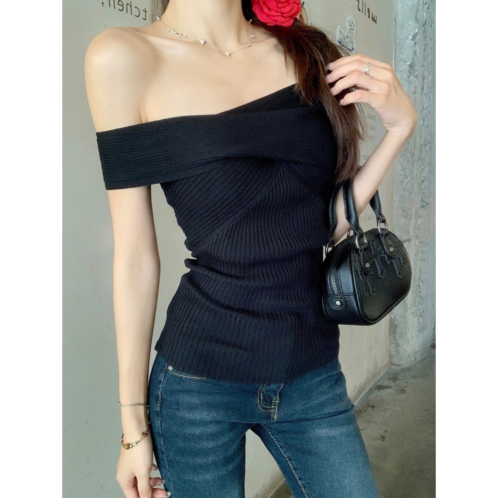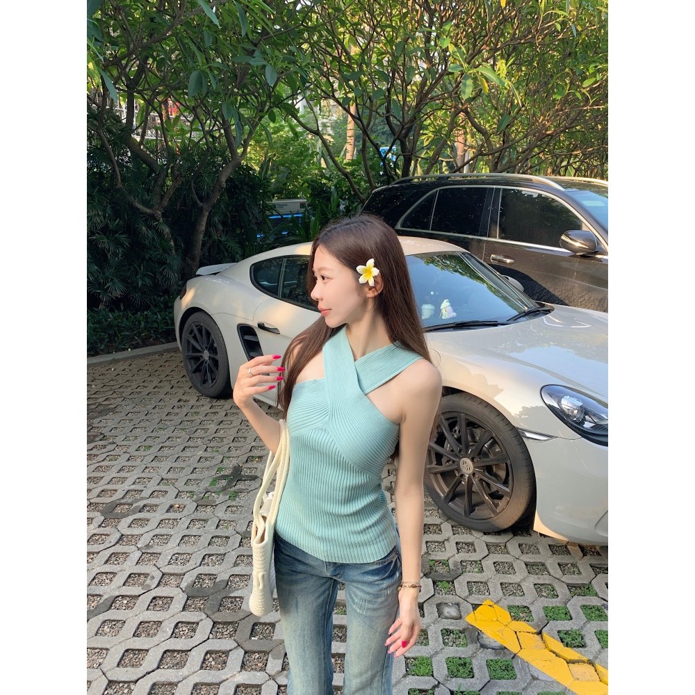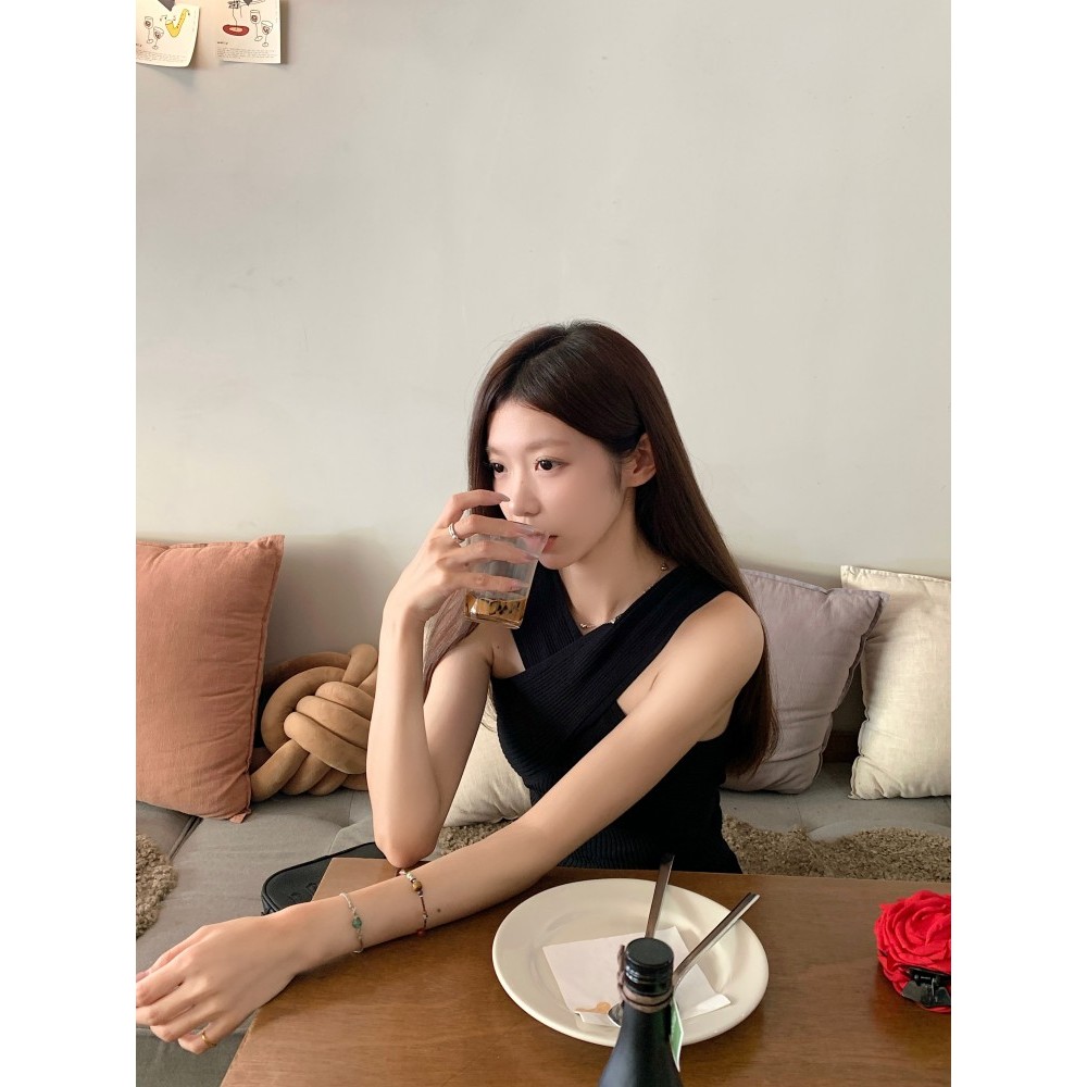 Moses Queen/Queen of Mercy เสื้อกล้ามถักไขว้สไตล์เกาหลี เสื้อกล้ามกระชับสัดส่วนแบบไม่มีแขนสำหรับผู้หญิง