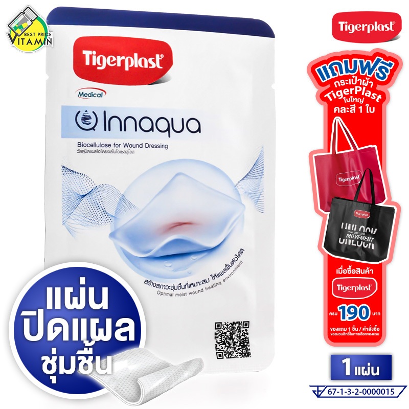 TigerPlast Medical Innaqua Biocellulose For Wound Dressing ไทเกอร์พล๊าส เมดิคอล อินอควา [1 แผ่น] ปิดแผล นาโนเซลลูโลส