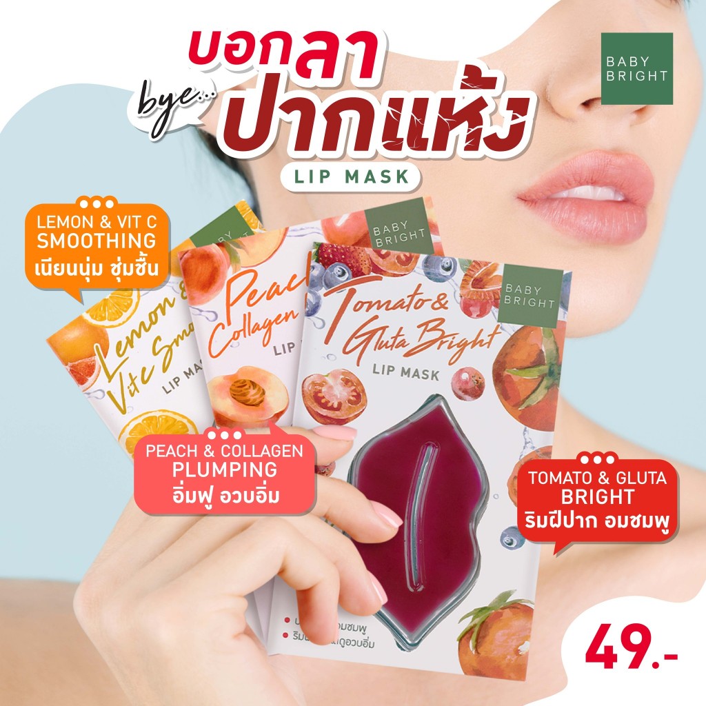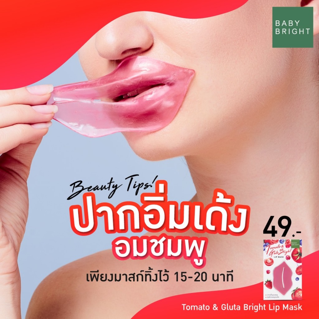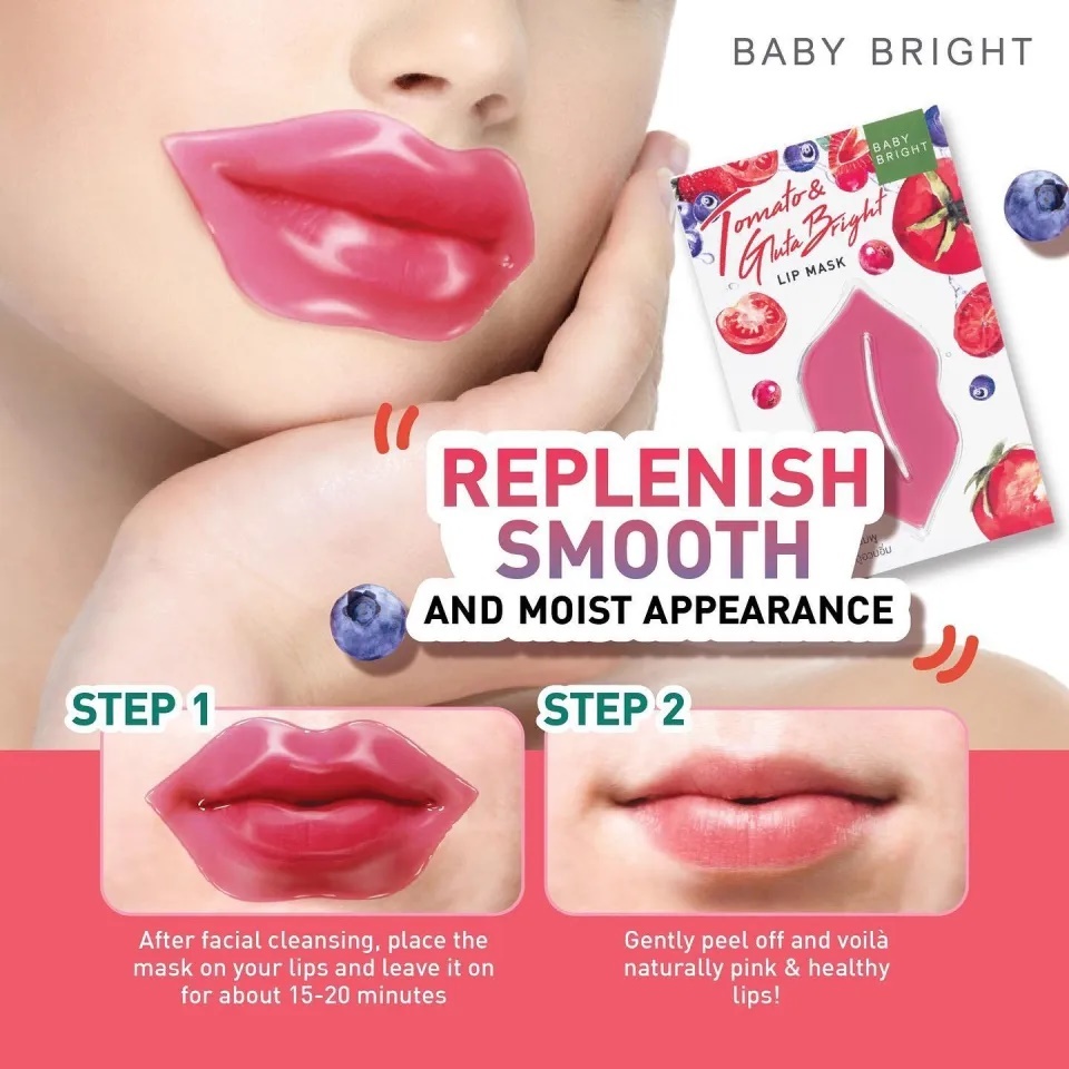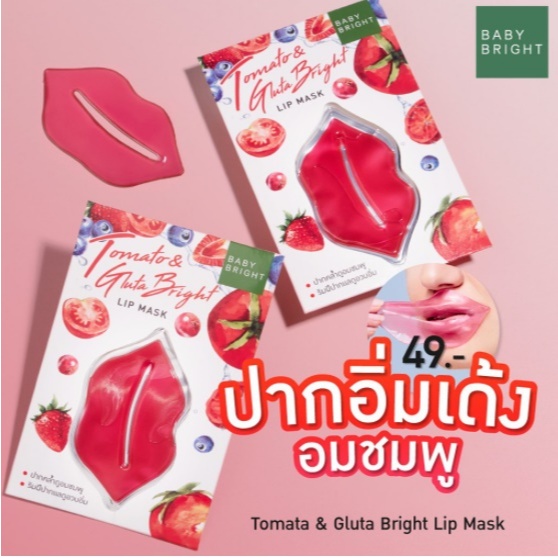 【1ชิ้น】แผ่นมาส์กปากชมพู【มี3สูตร】Baby Bright Smoothing Lip Mask 10g.【Tomato /Lemon/Peach】