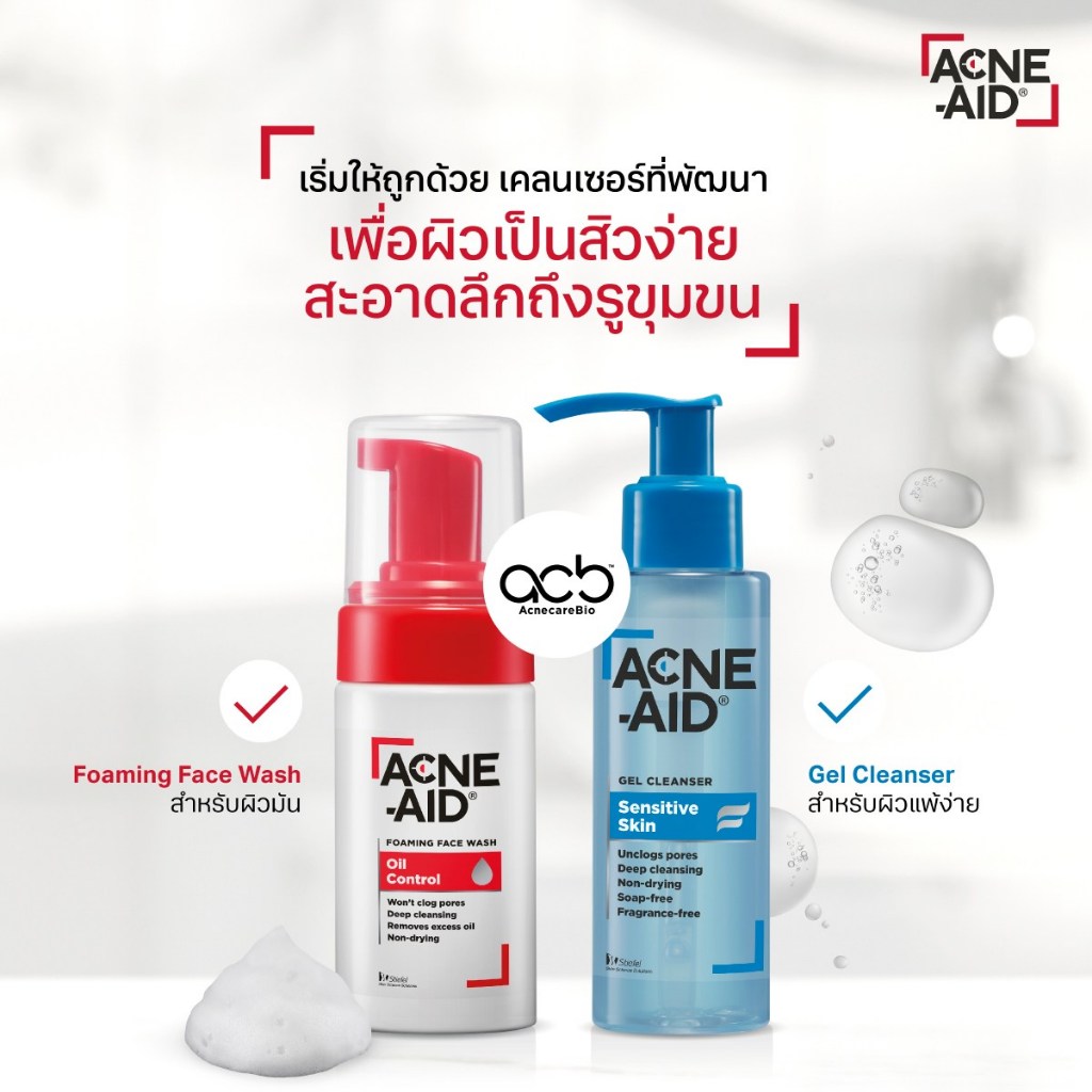 Acne Aid Gel Cleanser Sensitive Skin / Foaming Face Wash Oil Control แอคเน่ เอด เจล คลีนเซอร์ เซนซิทีฟ สกิน / โฟมมิ่ง