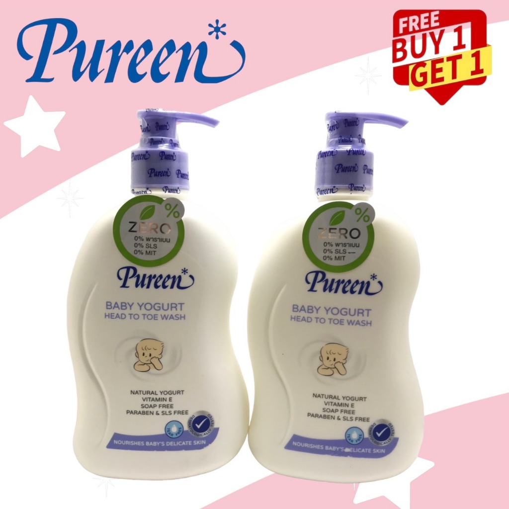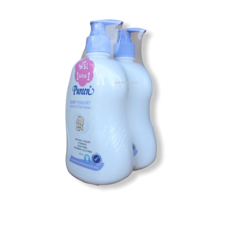 Pureen สบู่เหลว เบบี้เฮดโยเกิร์ตทูโทวอช Baby Yogurt head to toe wash 500 ml. แพ็ค ( 1 แถม 1 )
