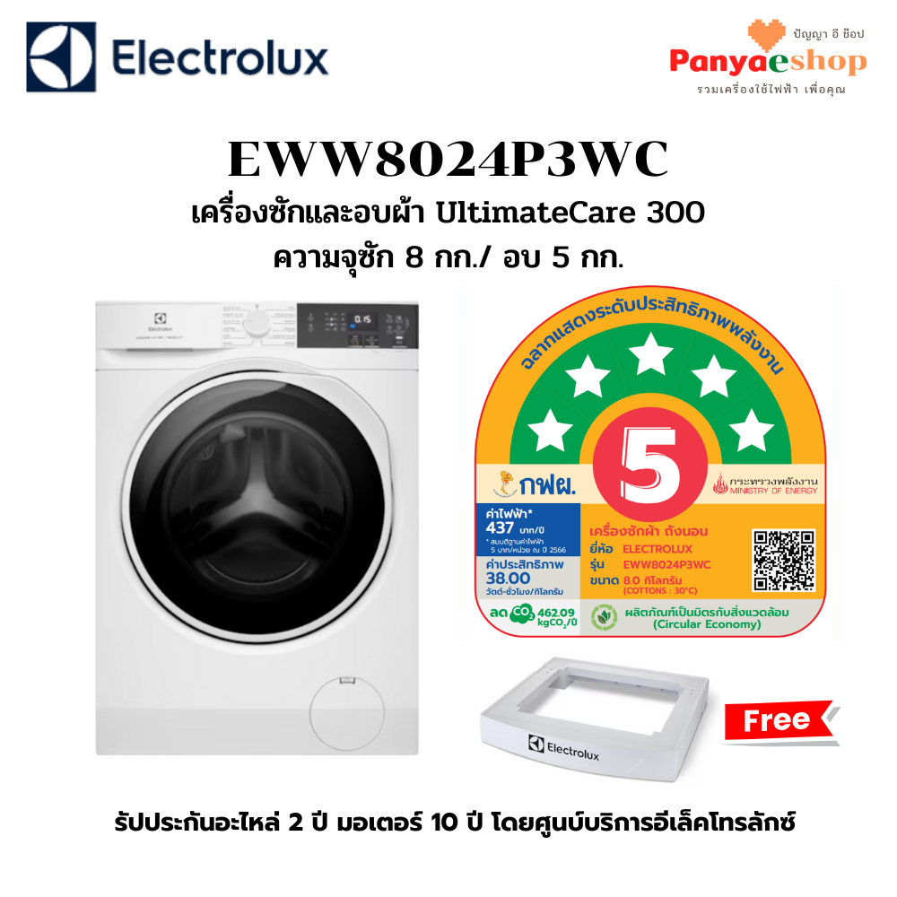 ELECTROLUX เครื่องซักอบและผ้า รุ่น EWW8024P3WC ซัก 8 กก/ อบ 5 กก สีขาว UltimateCare 300