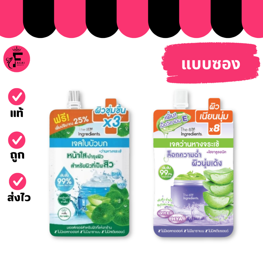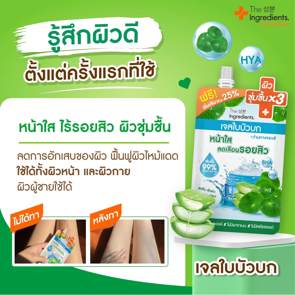(1 ซอง) The Ingredients สูตรหน้าใส เจลใบบัวบก /เจลว่านหางจระเข้เข้มข้น (ปริมาณ 40 กรัม/50 กรัม)