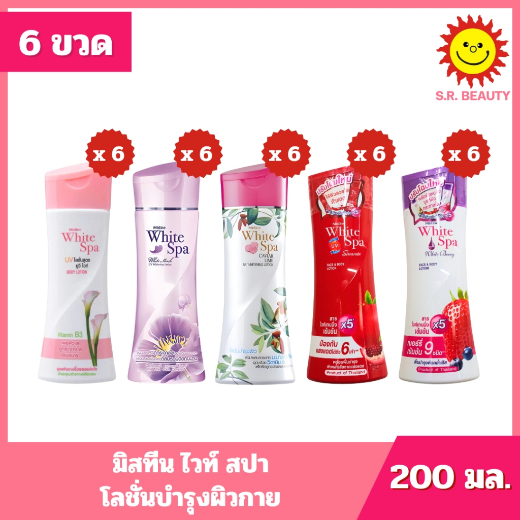[ 1 แพ็ค ] Mistine White Spa มิสทิน ไวท์ สปา โลชั่นบำรุงผิวกาย ขนาด 200 มล. x 6 ขวด มี 5 สูตร