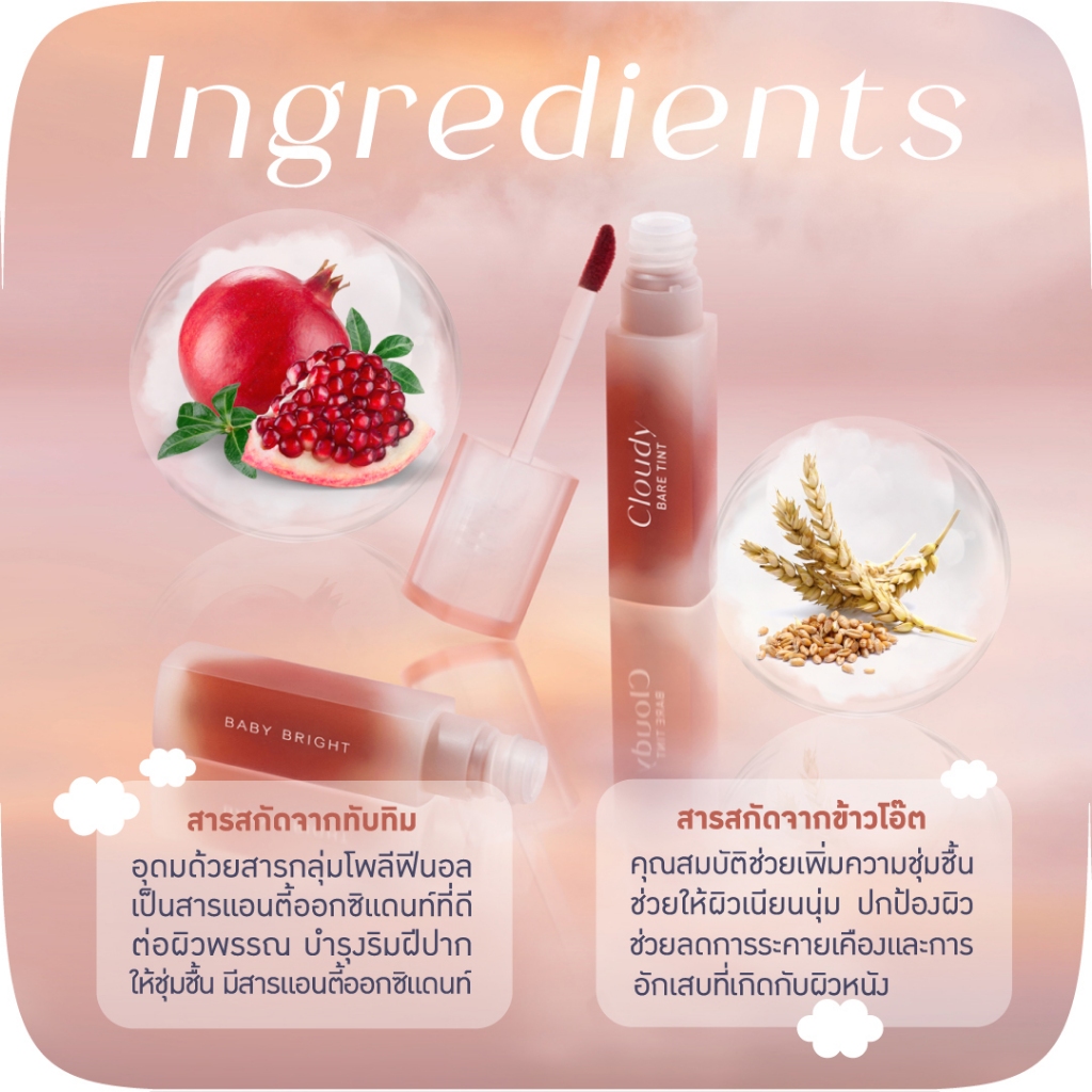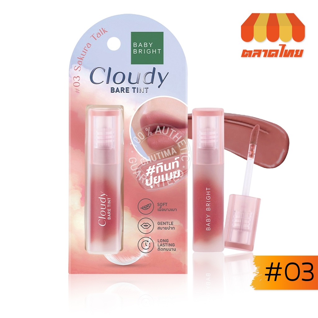 เบบี้ ไบร์ท ลิปทินท์ ปุยเมฆ บางเบา เกลี่ยง่ายติดทน Baby Bright Cloudy Bare Tint 2.6 g.