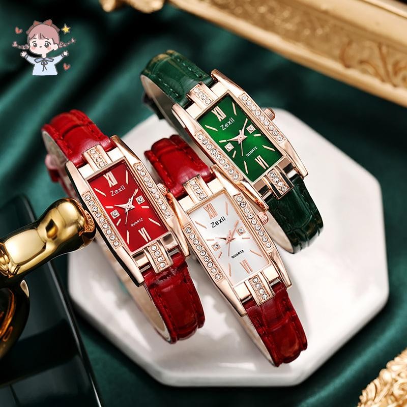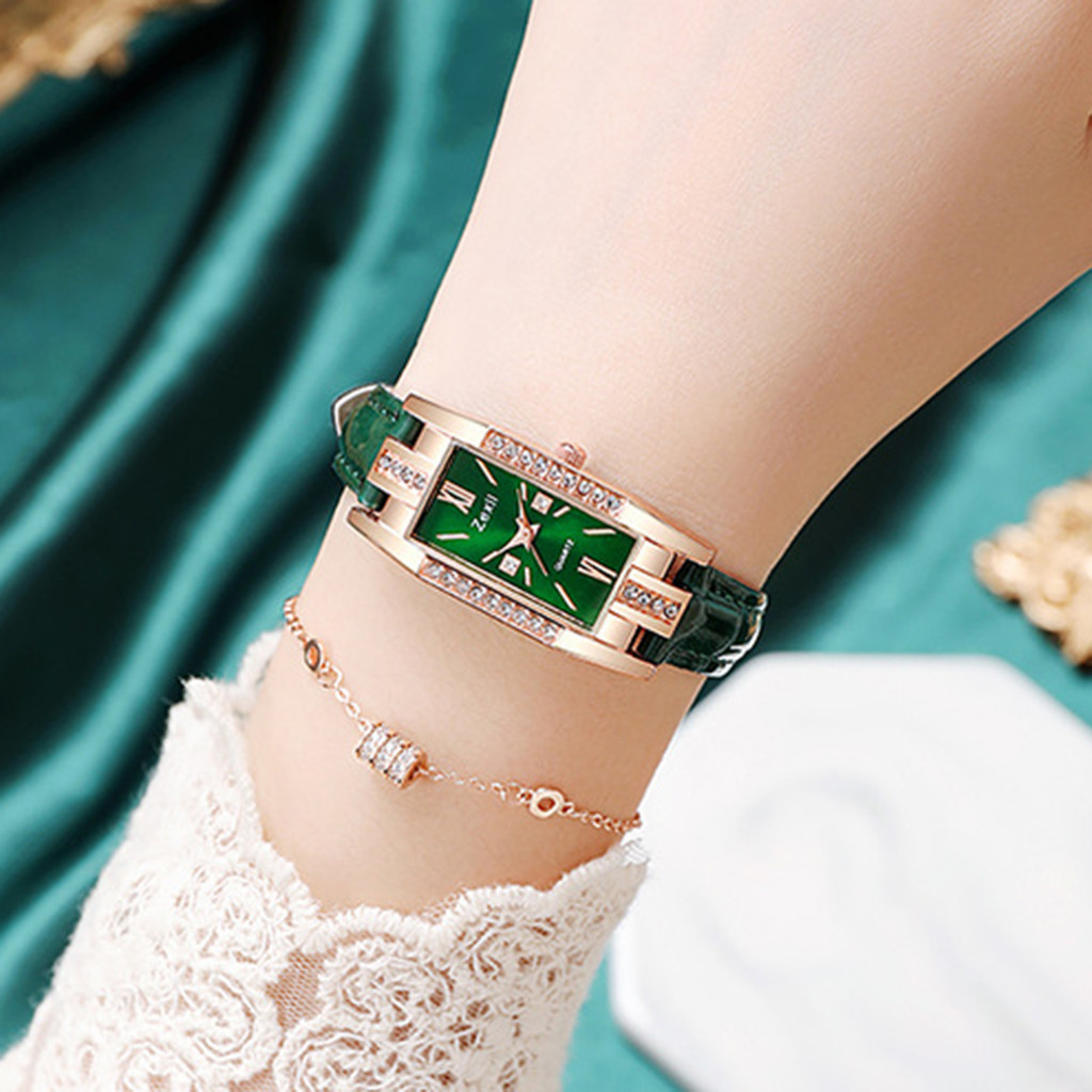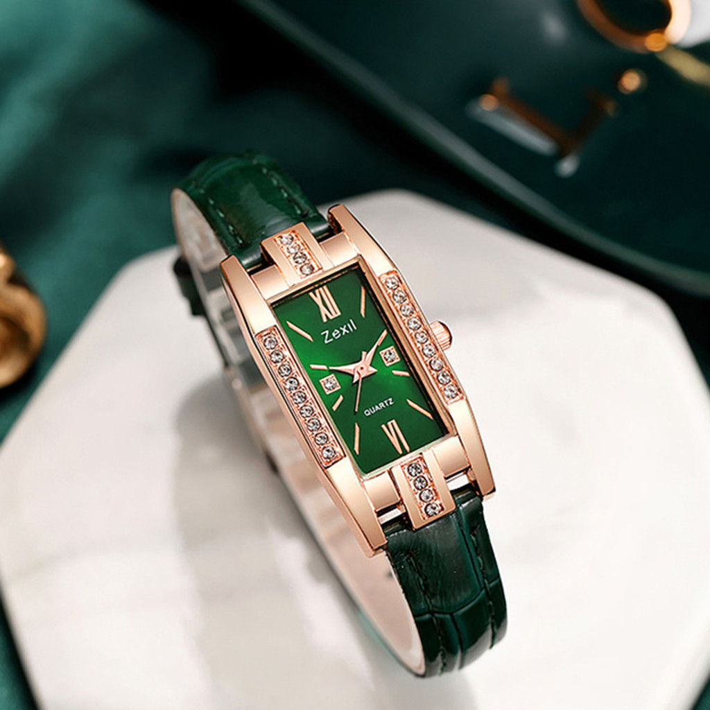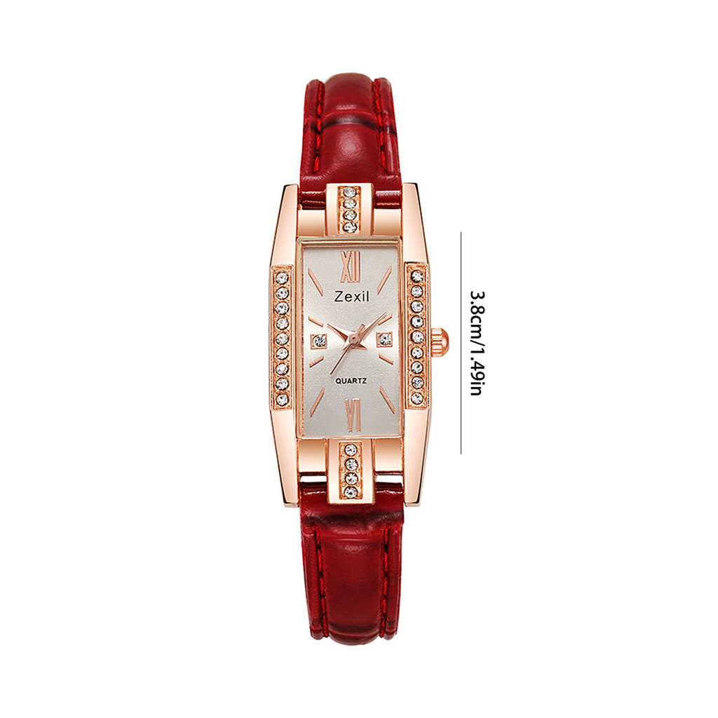 นาฬิกาควอทซ์ทรงสี่เหลี่ยมสําหรับผู้หญิงโลหะผสมคลาสสิกสายหนังเรียบง่ายและสง่างาม