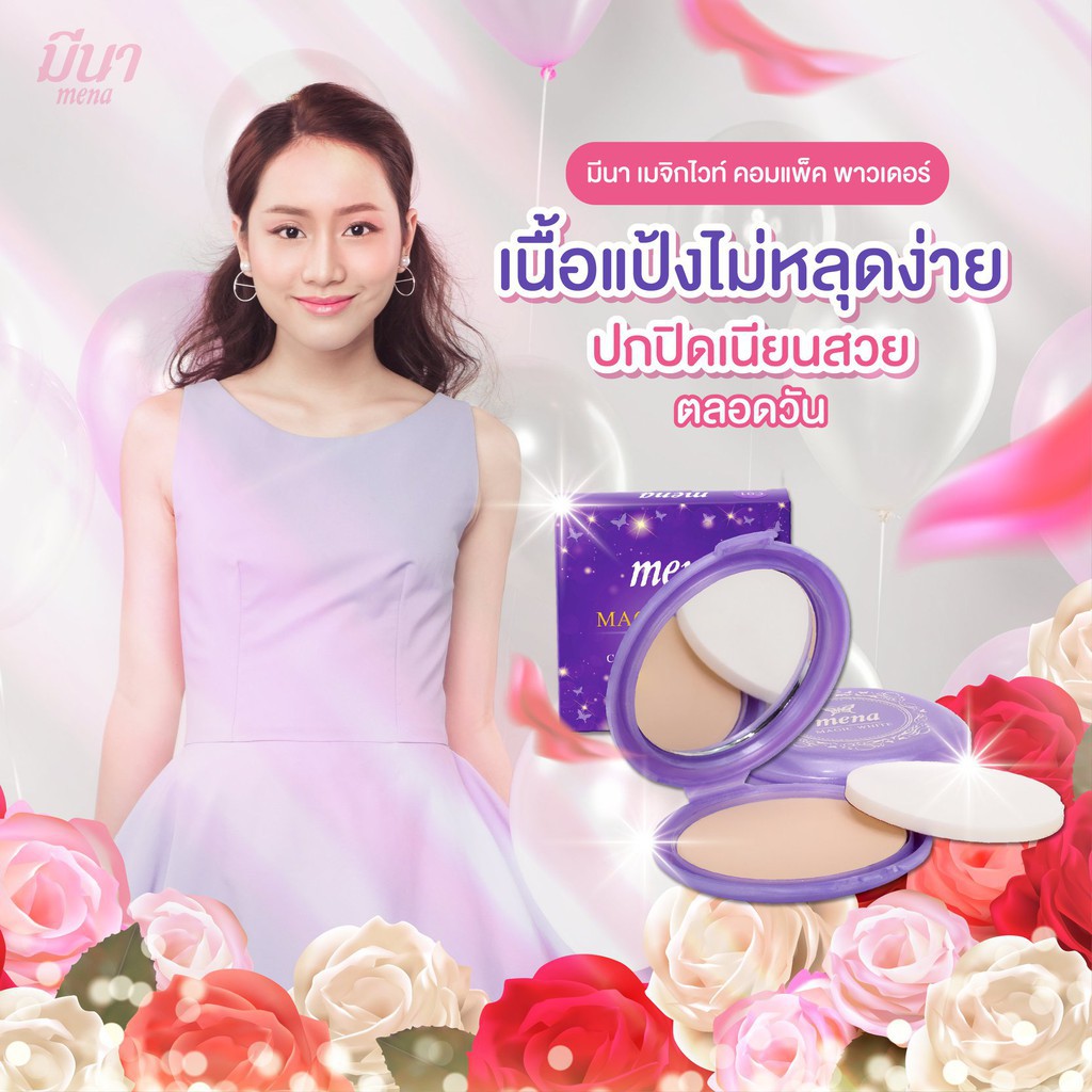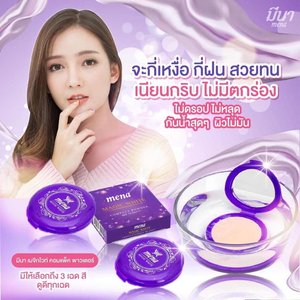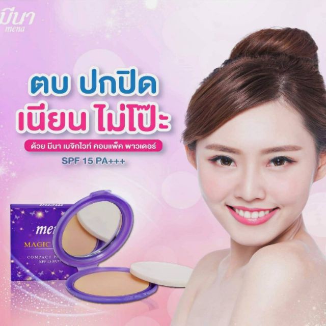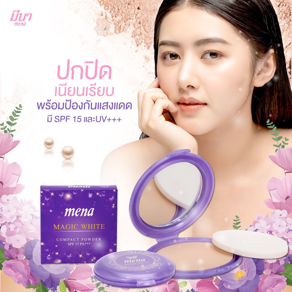 ** 1 ตลับ ** Mena Magic White Compact Powder แป้งพัฟ มีนา ขนาด 12 กรัม