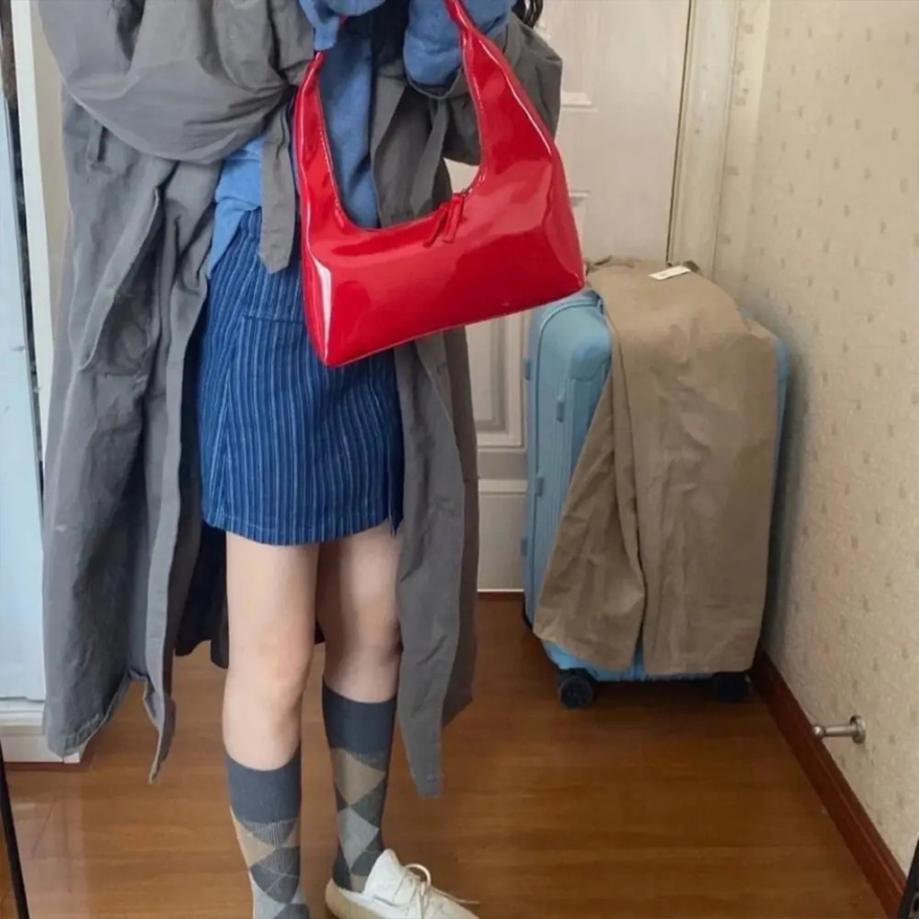 ความจุขนาดใหญ่กระเป๋าสะพายเงินกระเป๋าถือสไตล์เกาหลีสไตล์ฝรั่งเศสกระเป๋าถือแฟชั่นออกแบบสีทึบ ปู่ เกี๊ยว ถุง