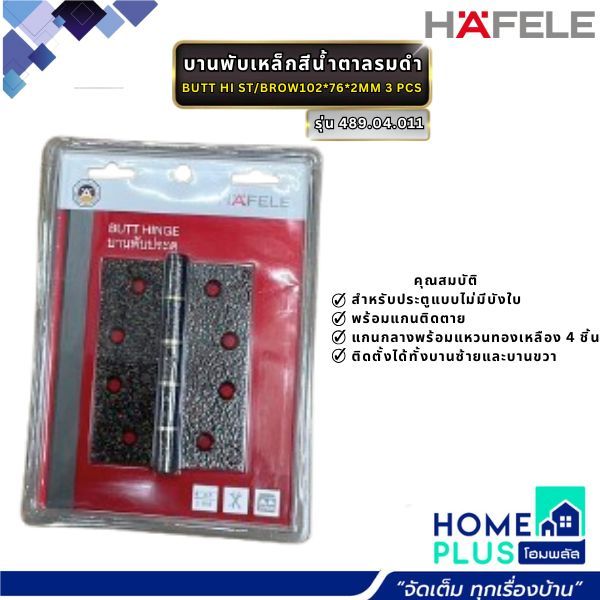 HAFELE บานพับเหล็กสีน้ำตาลรมดำ BUTT HI ST/BROW102*76*2MM 3 PCS #489.04.011