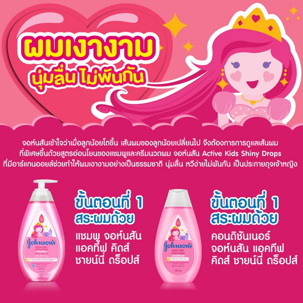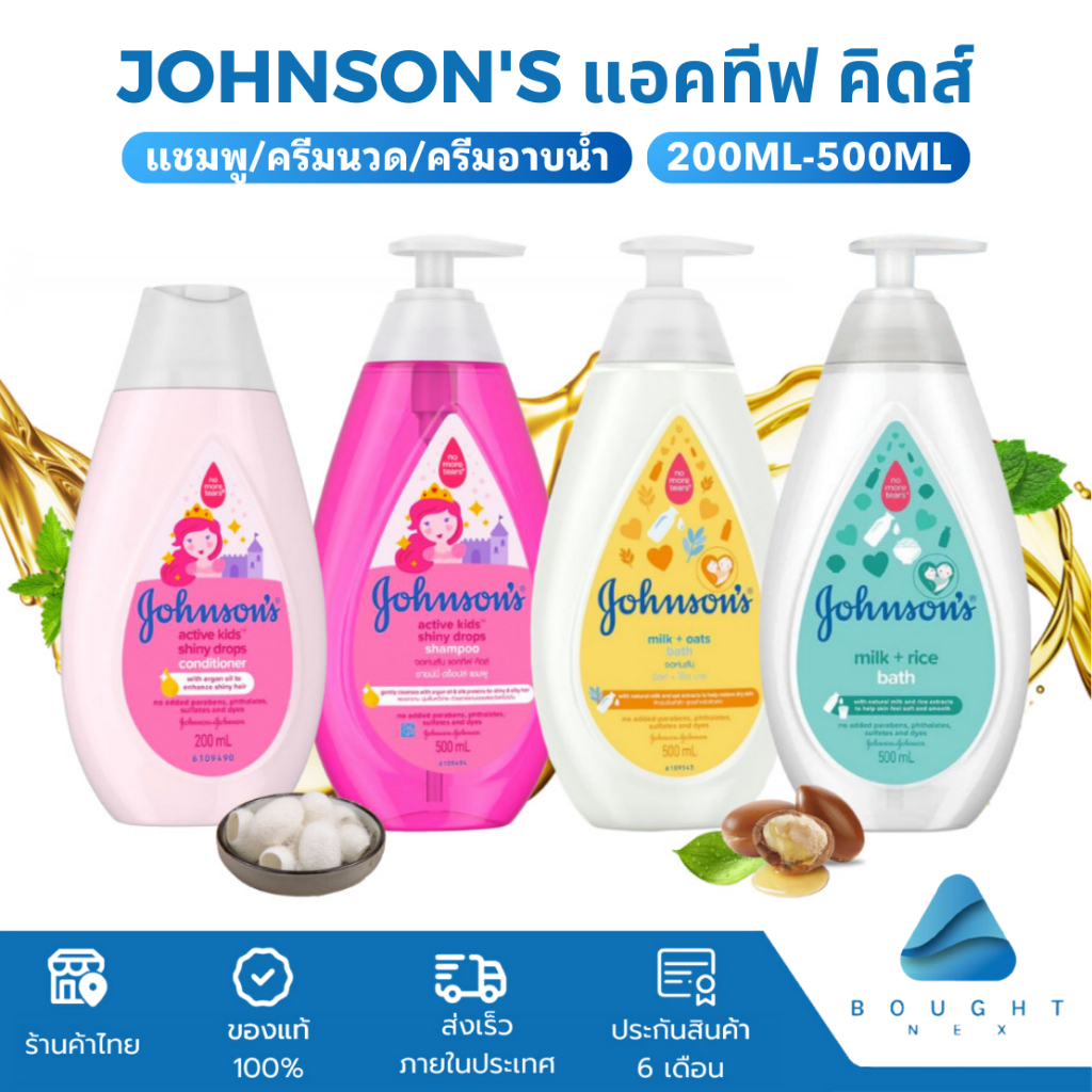 Johnson's จอห์นสัน เบบี้ แชมพูเด็ก ครีมอาบน้ำเด็ก แอคทีฟ คิดส์ 500ml ครีมนวดผม 200มล. และ Top-to-Toe 500 ml