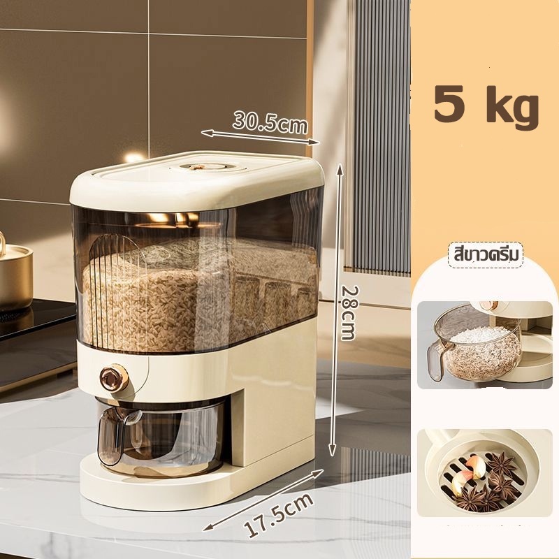 COD กล่องเก็บข้าวสารระบบกดปุ่มอัตโนมัติ ป้องกันแมลง-ความชื้น ใช้ง่ายไม่ต้องเปิดฝา