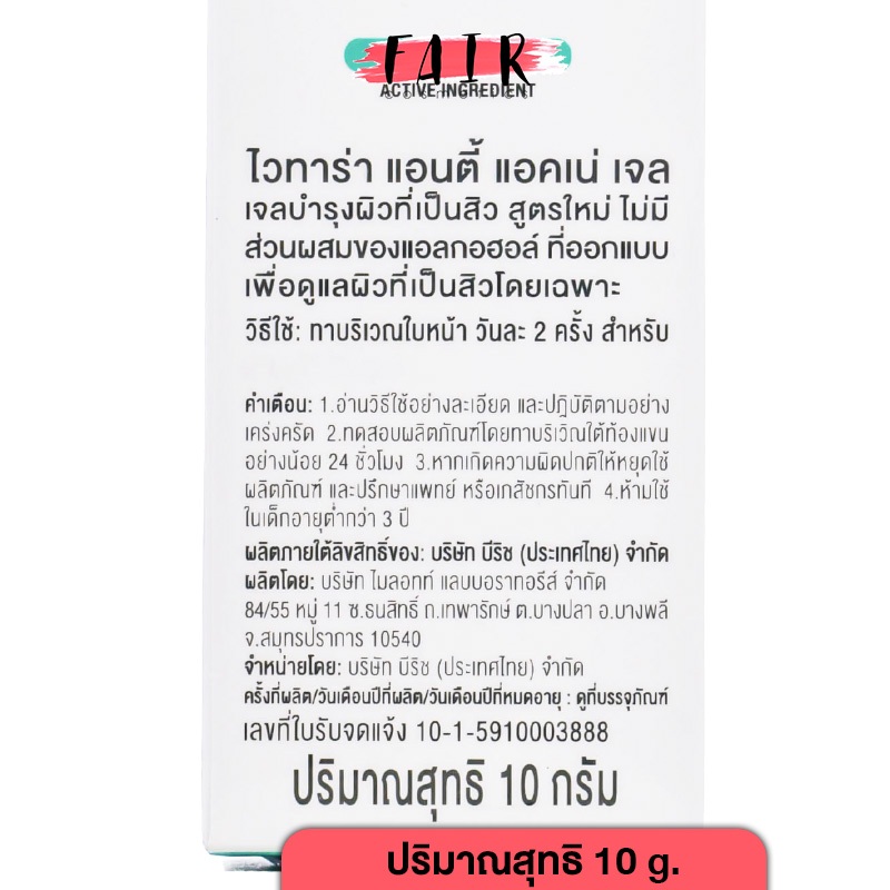 Vitara Anti Acne Gel ไวทาร่า แอนตี้ แอคเน่ เจล [10 g.] เจลแต้มสิว แต้มสิว