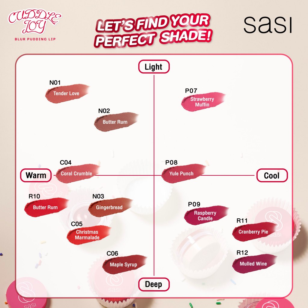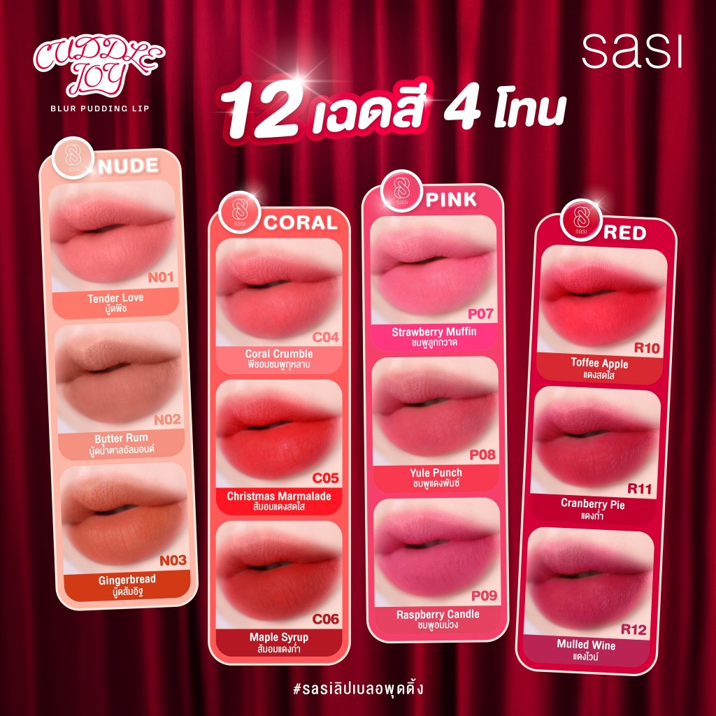 ถูก/แท้/มีไลฟ์ ลิป Sasi Cuddle Joy Blur Pudding Lip ลิปเบลอพุดดิ้ง ลิปแมท เนื้อกำมะหยี่ เบลอปากนัว สีฟุ้ง เกลี่ยง่าย