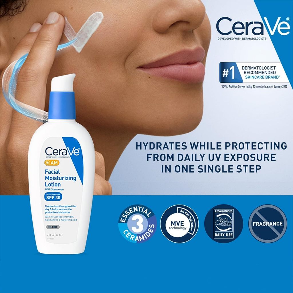 [ของแท้ จากเมกา] CERAVE AM FACIAL MOISTURIZING LOTION BROAD SPECTRUM WITH SUNCREEN 3 fl.oz. (89 ml.)