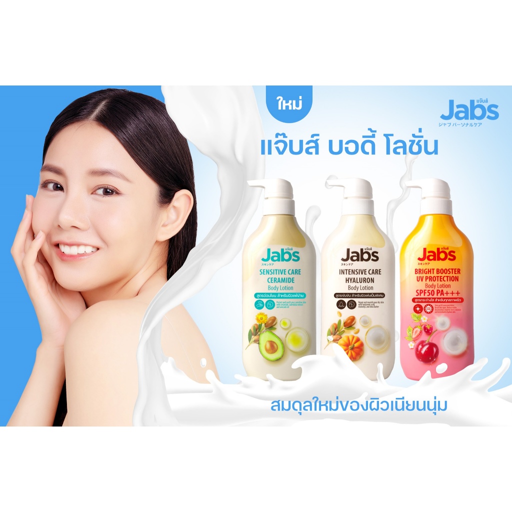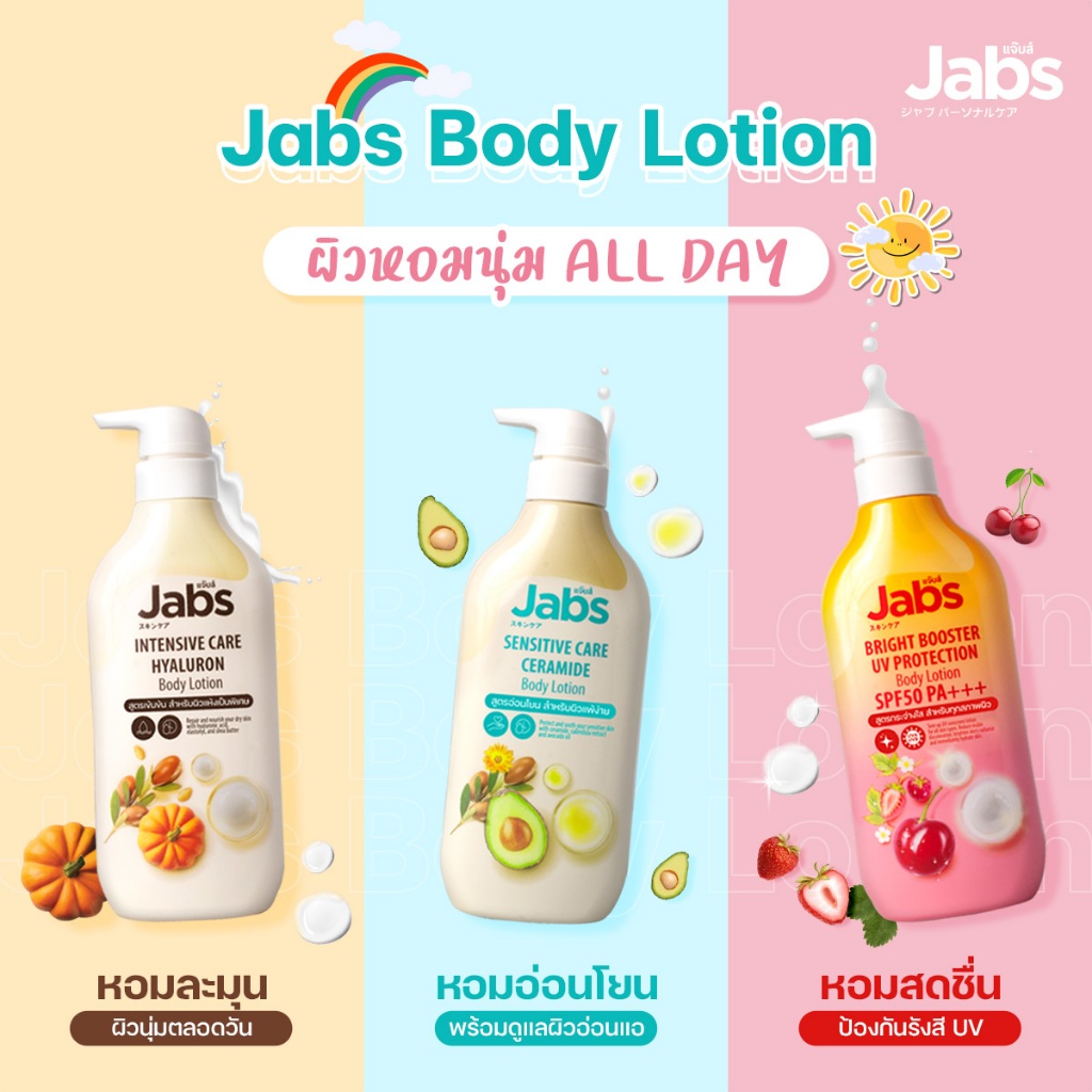 Jabs Body Lotion 450ml แจ๊บส์ บอดี้ โลชั่น ครีม บำรุงผิว สุดคุ้ม ครีมกันแดด ผิวแพ้ง่าย ผิวแห้ง