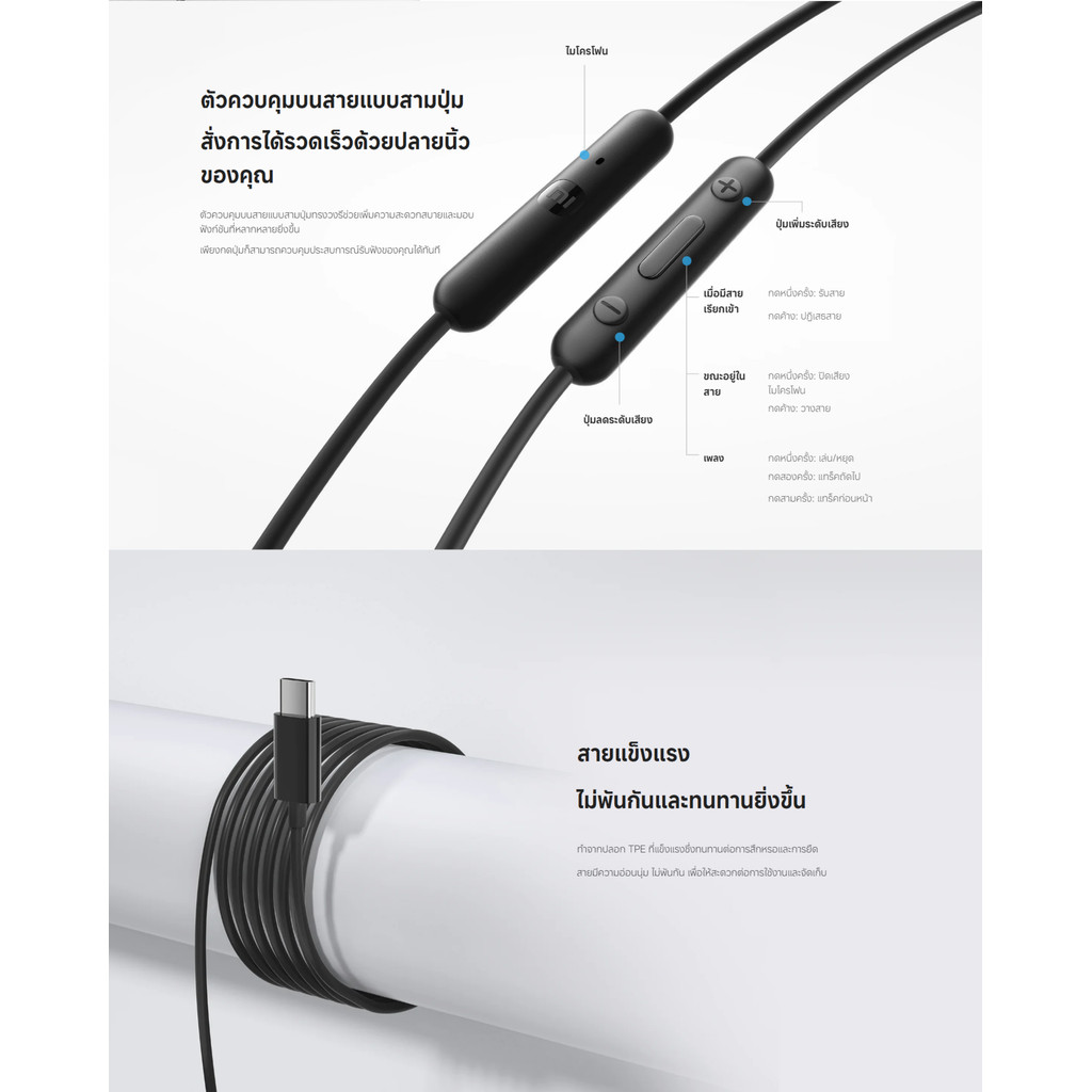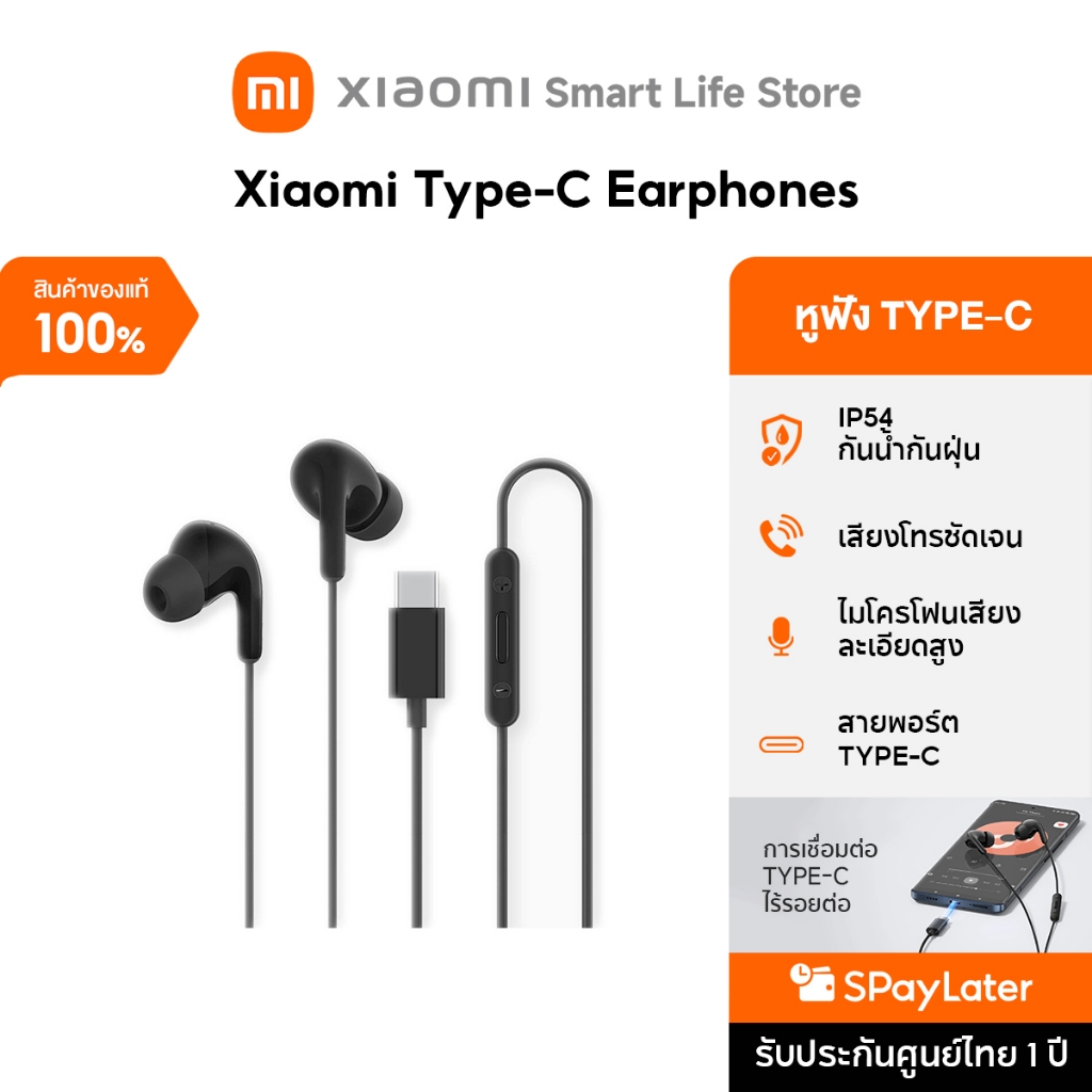Xiaomi Type-C Earphones | สายสัญญาณเสียง 3.5 | หูฟัง IP54 | กันฝุ่นและกันน้ำ | สนทนาได้ชัดเจน | ไมโครโฟน HD