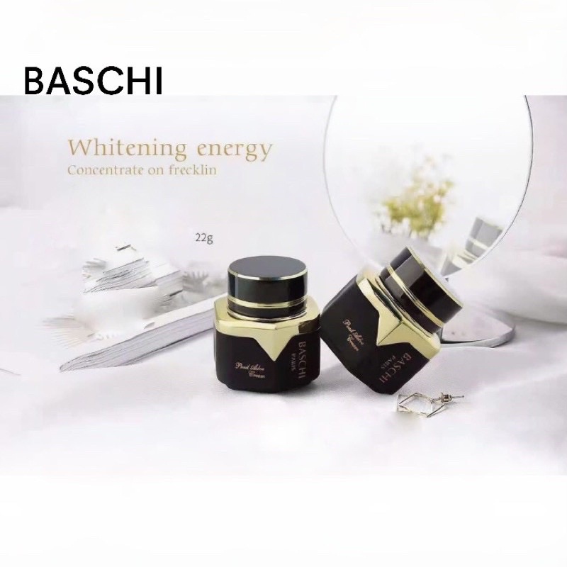 KT-63🌟Baschi Creamครีมบาชิ Baschiของเเท้💯บาชิแท ้ครีมไข่มุกสูตรเข้มข้น ผิวกระจ่างใสไร้ริ้วรอบไร้จุดด่างดำขาวไว( 22 กรัม )