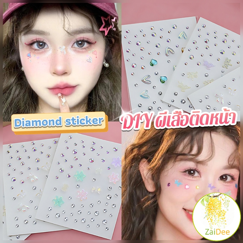 DIY เพชรติดหน้า สติ๊กเกอร์ติดหน้าติดทน รูปผีเสื้อ 3D Rhinestone sticker