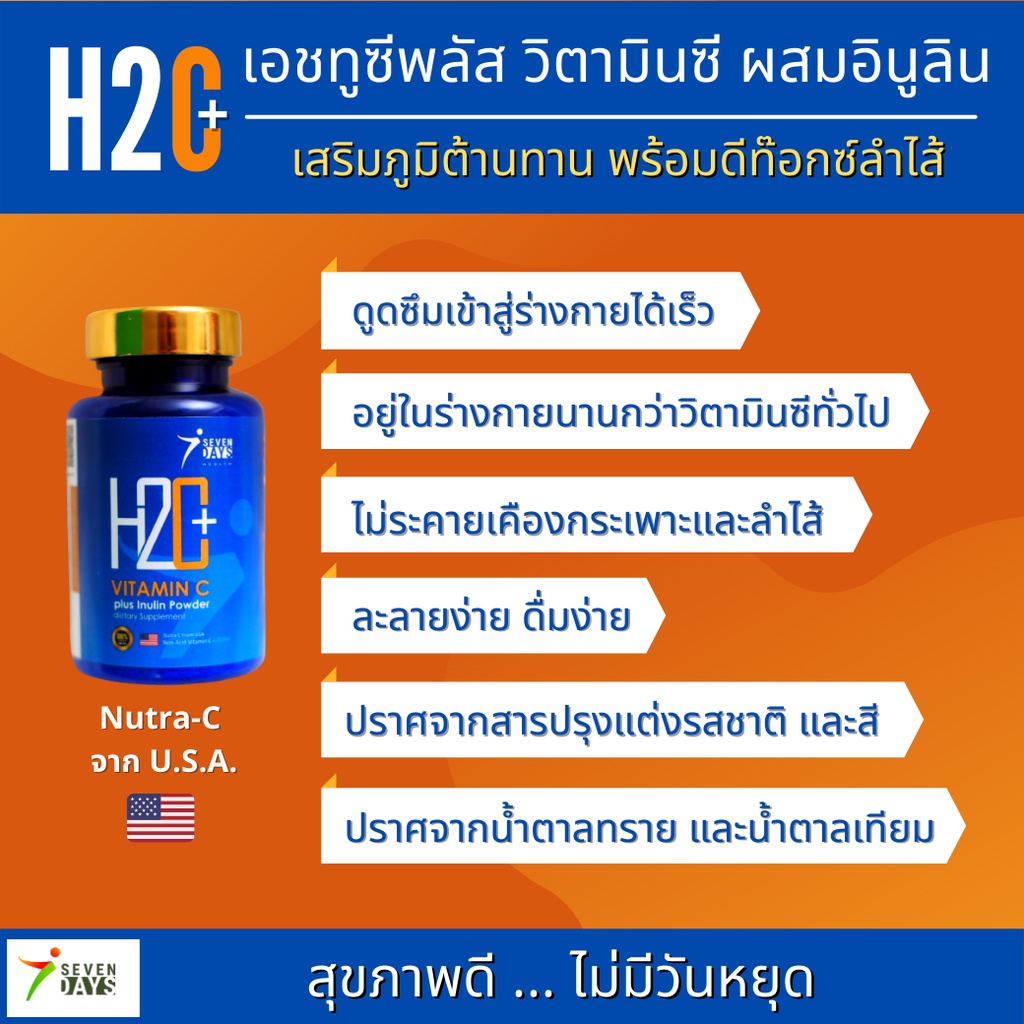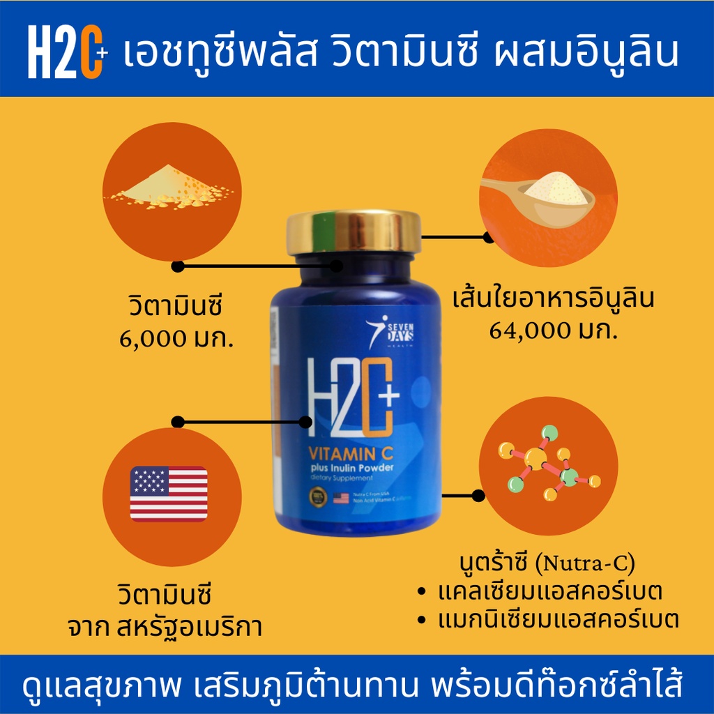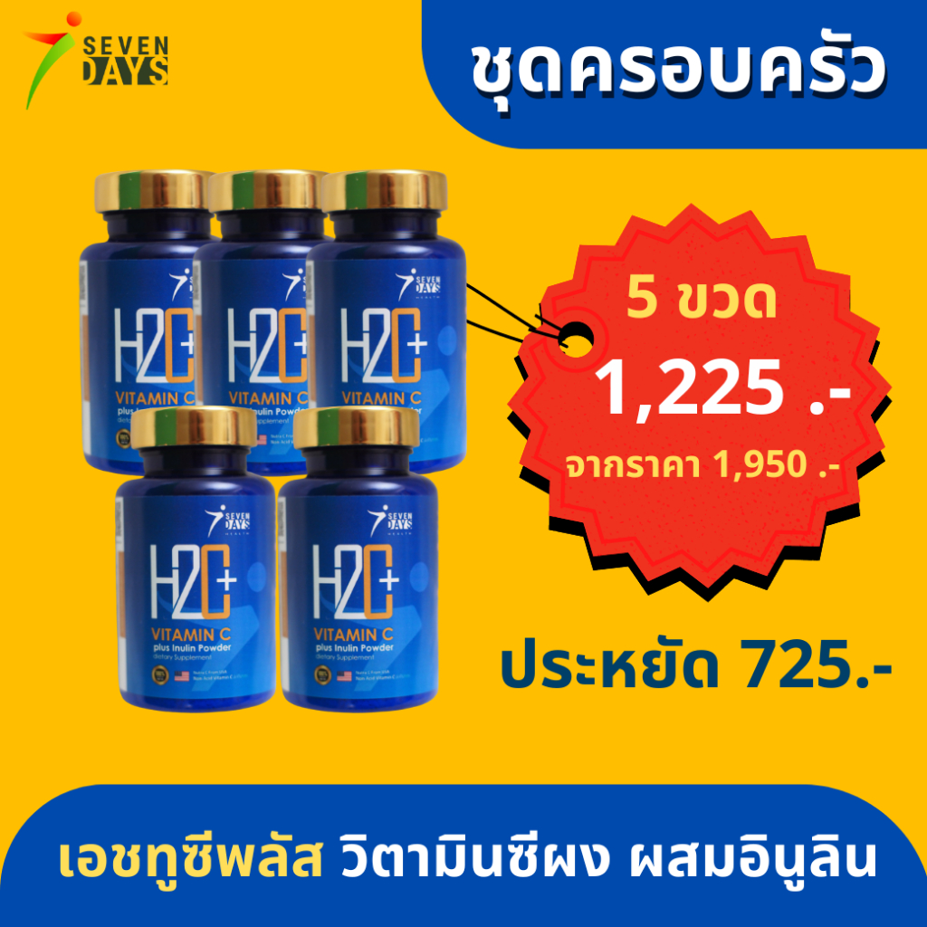 วิตามินซีชนิดผง Family Pack 5 ขวด H2C+ เอชทูซีพลัส ผสมอินูลิน [พรีไบโอติกส์] สำหรับชงดื่มพร้อมน้ำไฮโดรเจน