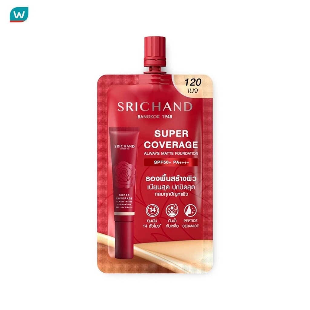 Srichand ศรีจันทร์ ซูเปอร์ คัฟเวอเรจ ฟาวน์เดชั่น SPF50 PA++++ 6มล. #120 เบจ