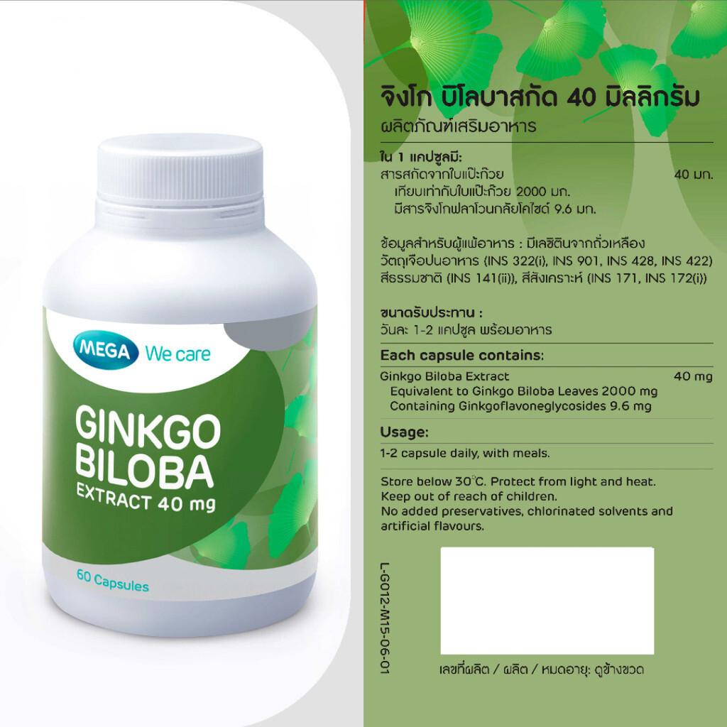 MEGA We care เมก้าวีแคร์ GINKGO BILOBA จิงโกบิโลบาสกัด 60 แคปซูล [PC]