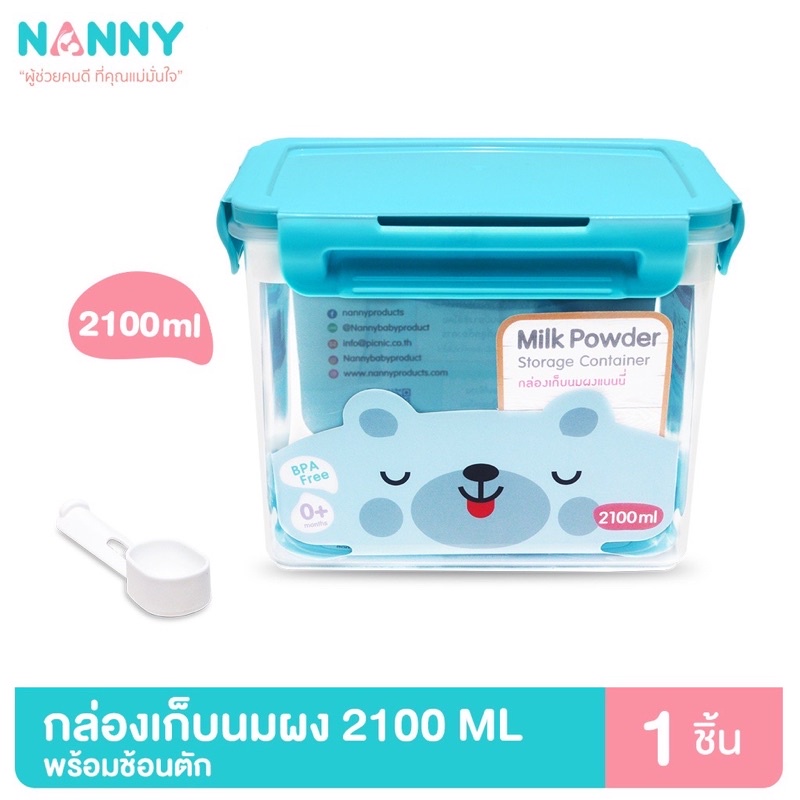 Nanny กล่องเก็บนมผงสูญญากาศ พร้อมช้อนตัก 2100 มล. มี BPA Free