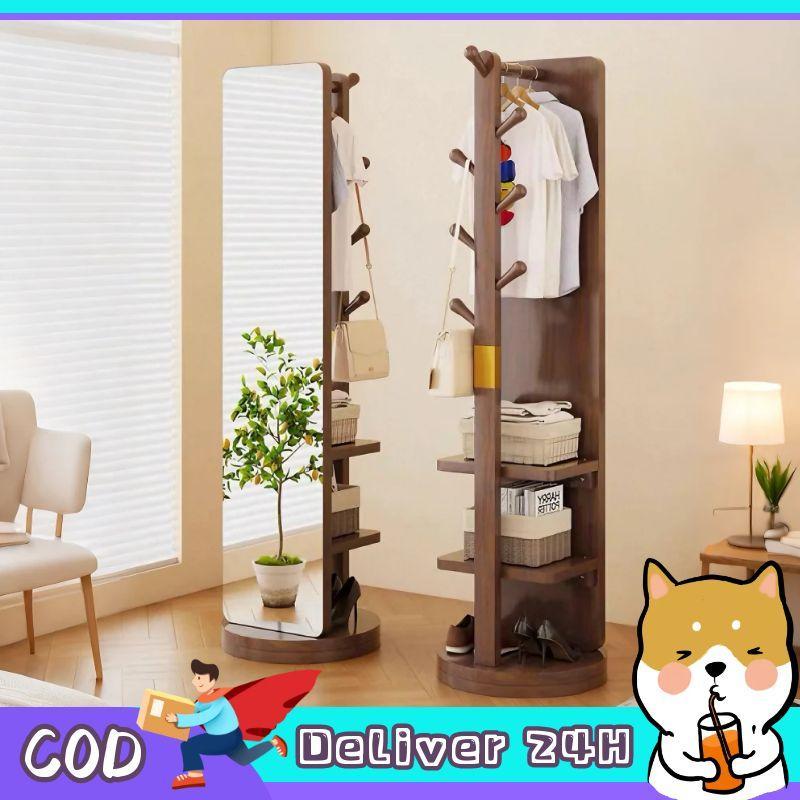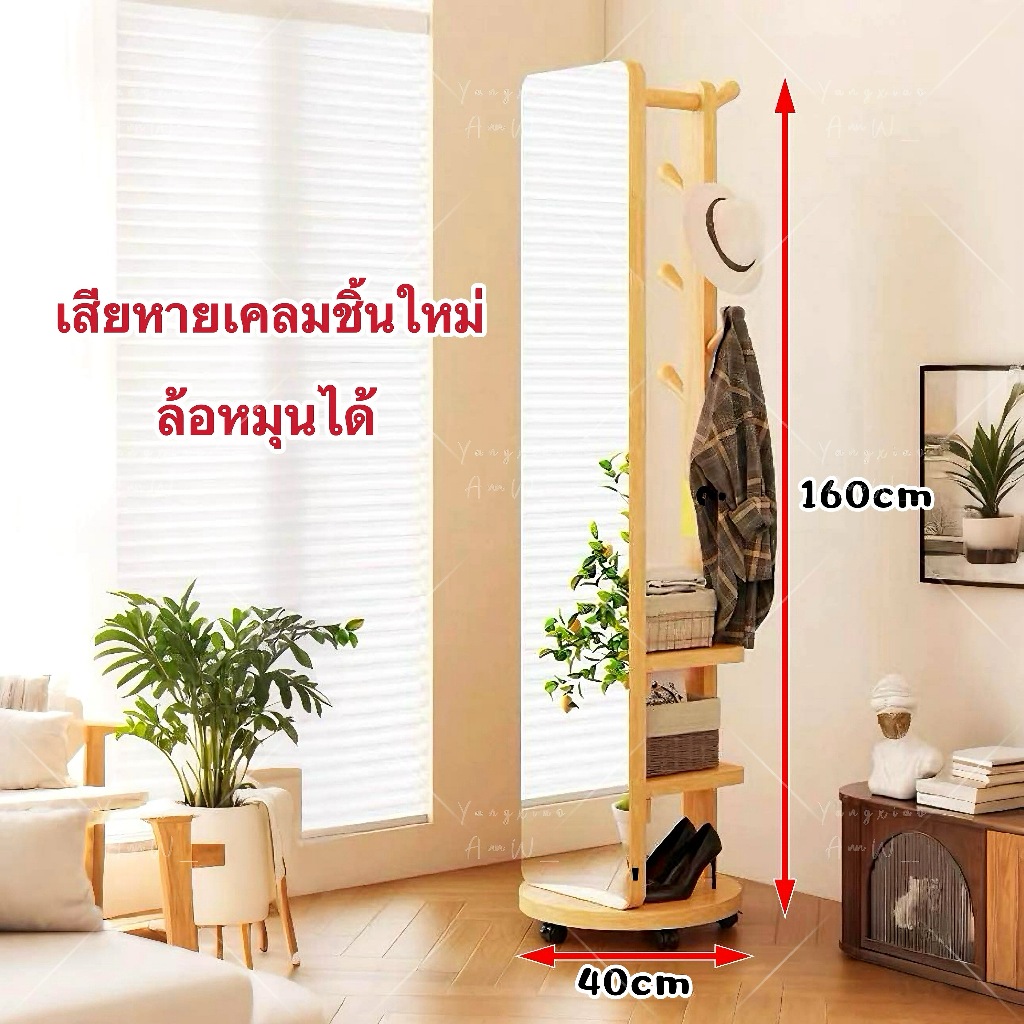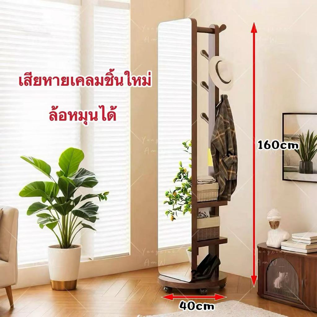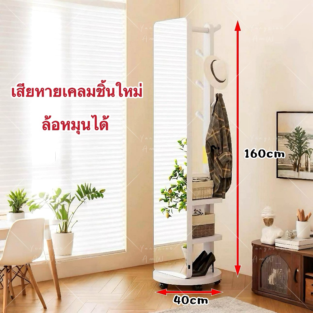 Dogegg🐶กระจกตั้งพื้น(เสียหายเคลมชิ้น ใหม่) ฐานหมุนได้ พร้อมที่แขวนและชั้นจัดเก็บของใช้ ประหยีดพื้นที่ ใช้งานได้หลากหลาย