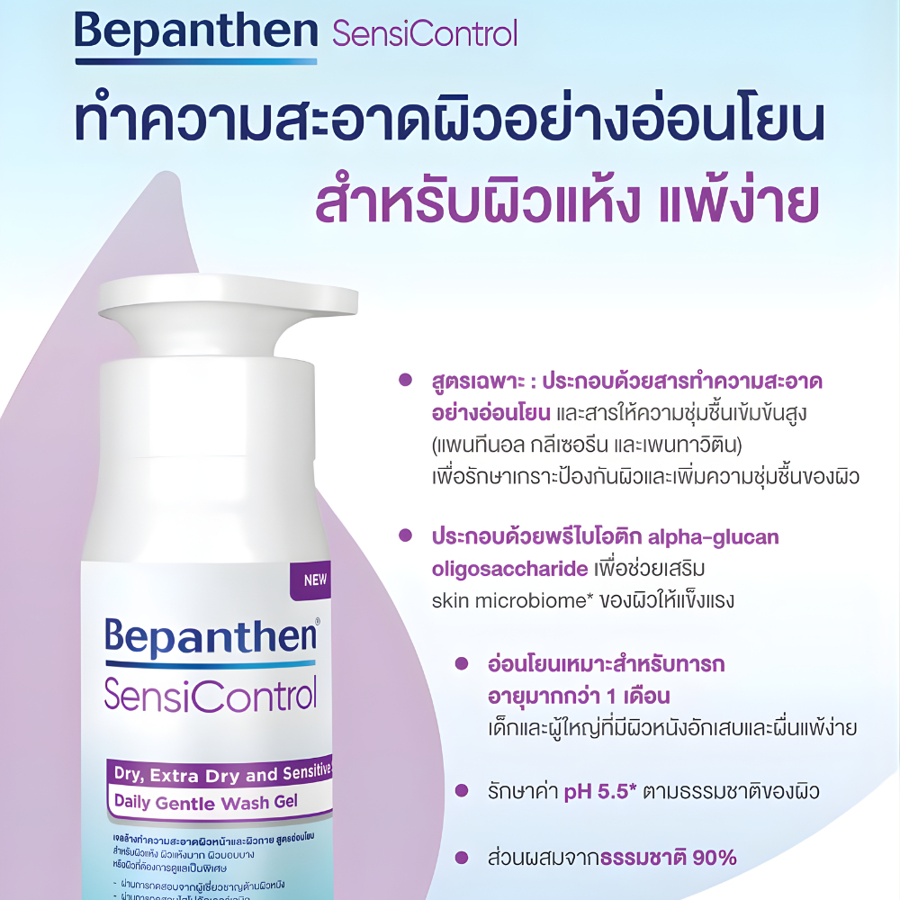 Bepanthen Sensicontrol เจลล้างทำความสะอาดผิวหน้าและผิวกาย สูตรอ่อนโยน