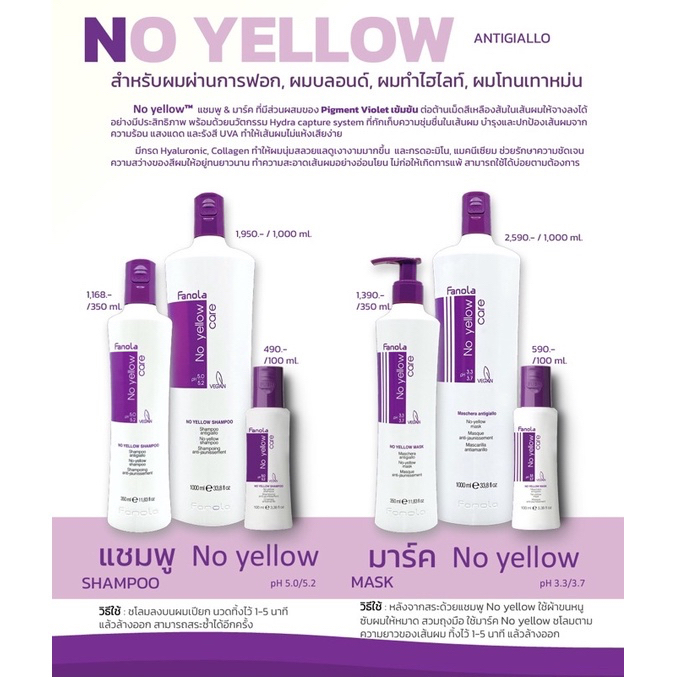 Fanola ฟาโนล่า อิตาลี แชมพูม่วง มาส์กม่วงเข้มข้น Fanola No Yellow Shampoo Silver shampoo goodbye yellow
