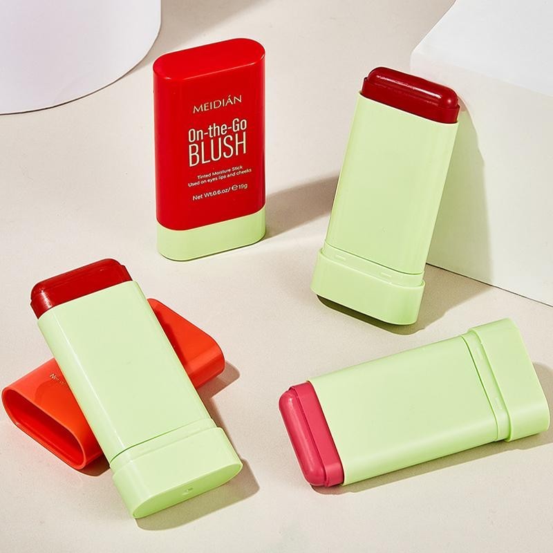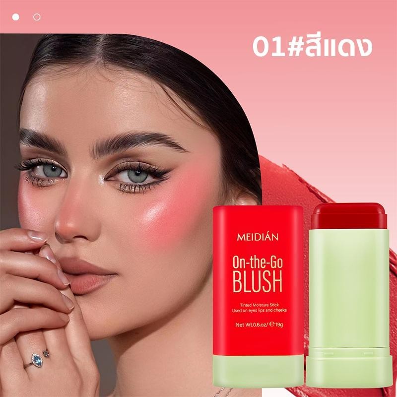 บลัชออนติด ครีมสีสวย หมุนได้ สีแดง สีส้ม สีชมพู อิ่มตัวตามธรรมชาติ เนื้อดี สีสวย สามมิติ ติทนนาน กันน้ำ