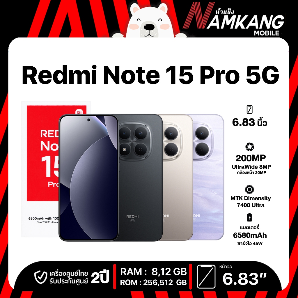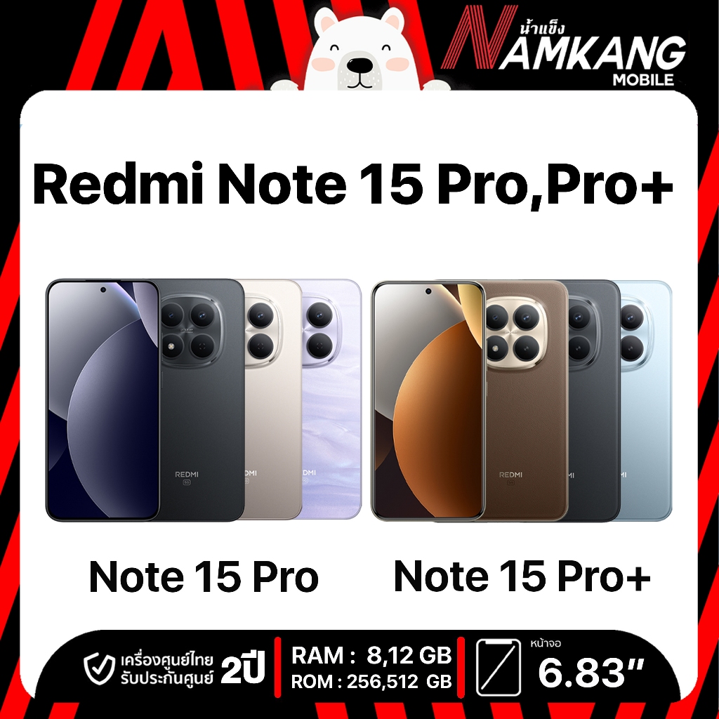 **พร้อมส่ง**REDMI Note 15 Pro 5G (8/256GB,12/512GB), REDMI Note 15 Pro+ 5G(12/512GB) หน้าจอ 6.83นิ้ว ประกันศูนย์ไทย 2 ปี
