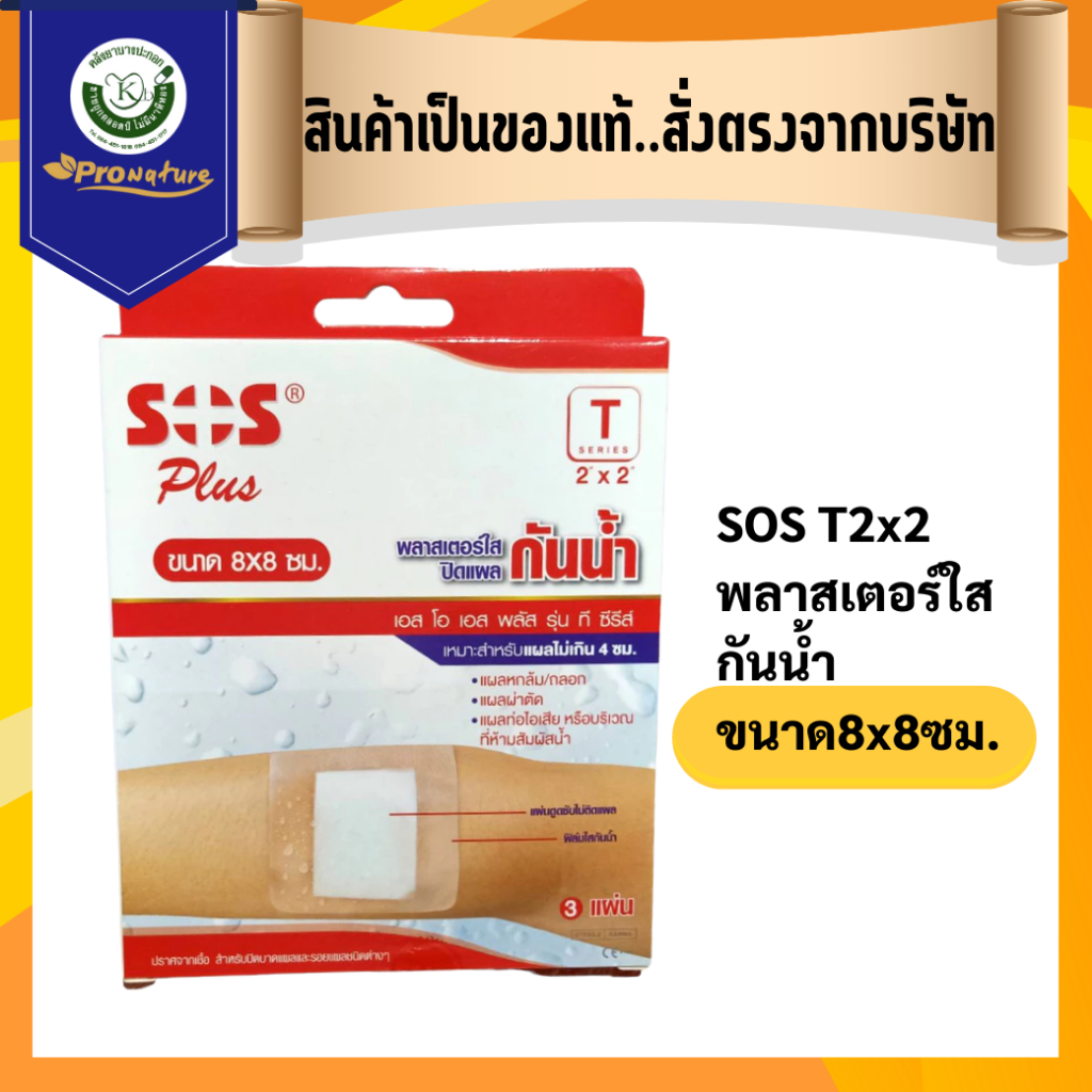 7790 SOS T2x2 พลาสเตอร์ใส กันน้ำขนาด8x8ซม.Exp.04-08-2027