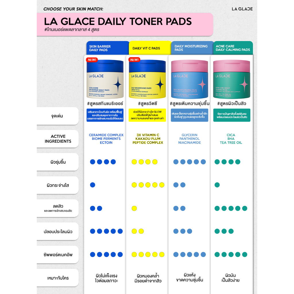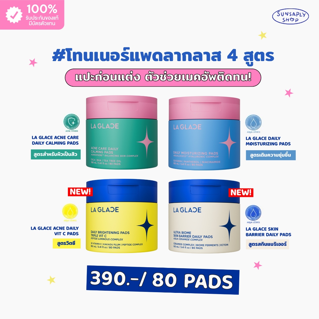 (กด 2กระปุก แถมฟรี Travel 1ห่อ) La Glace Daily Toner Pads 80pads Moisturizing/Acne/VitC/Barrier โทนเนอร์แพดลากลาส