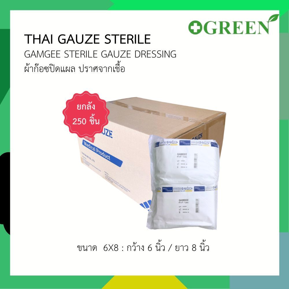 Thai gauze sterile Gamgee ขนาด 6x8 [ 1 ลัง บรรจุ 250 ซอง ] (4811)